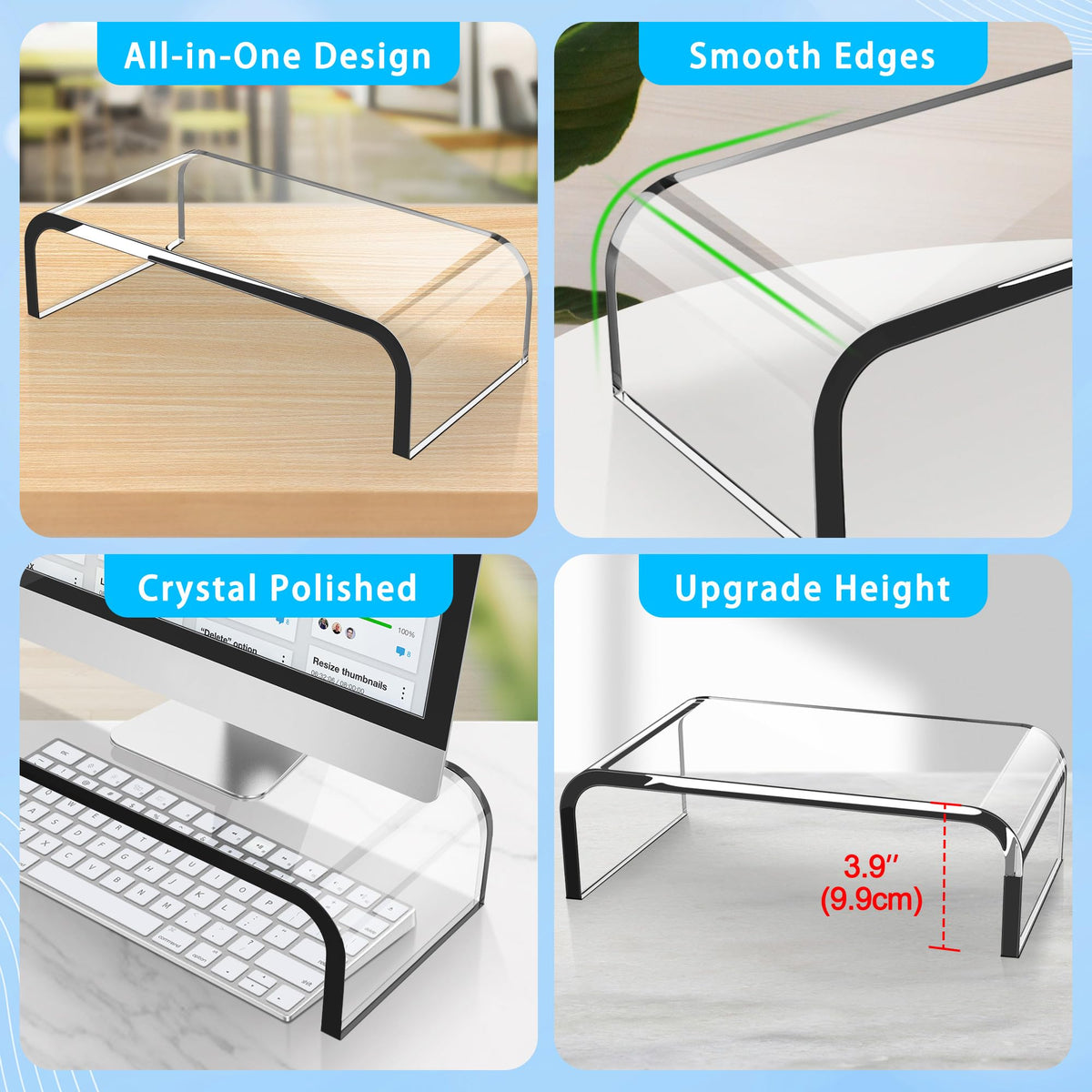AboveTEK Acrylic Monitor Stand � Clear Monitor Riser & Computer Desk Stand, Premium Acrylic Laptop Stand for Home Office, PC TV Stand with Keyboard Storage Heavy Duty Desk Riser
