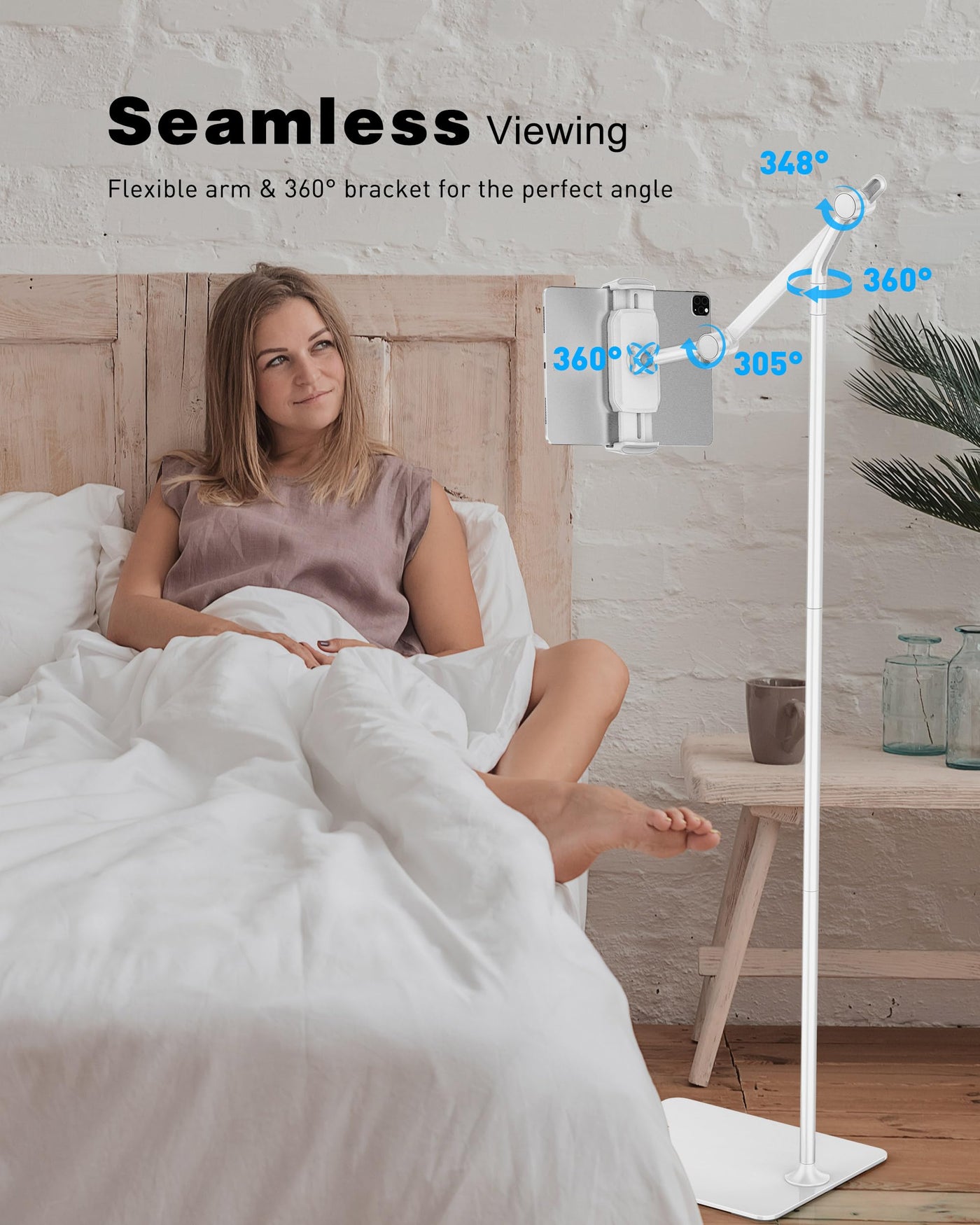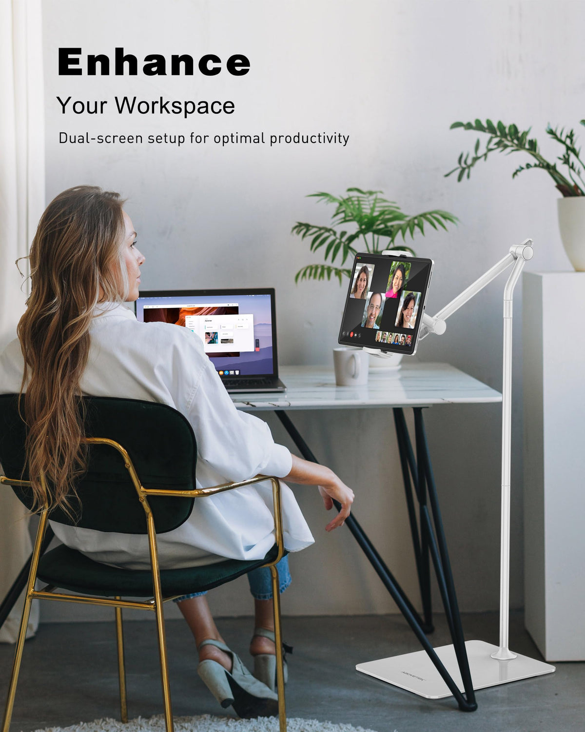 Discover the perfect companion for your digital lifestyle with our premium tablet floor stand. Whether you're video calling from the bedroom, watching a cooking show in the kitchen, or streaming your favorite series in the living room, this stand delivers unparalleled versatility. Designed to securely hold devices from 4.7� to 13.5�, it�s perfect for iPads, iPhones, Samsung Galaxy Tabs, Surface Pros, and Kindles.