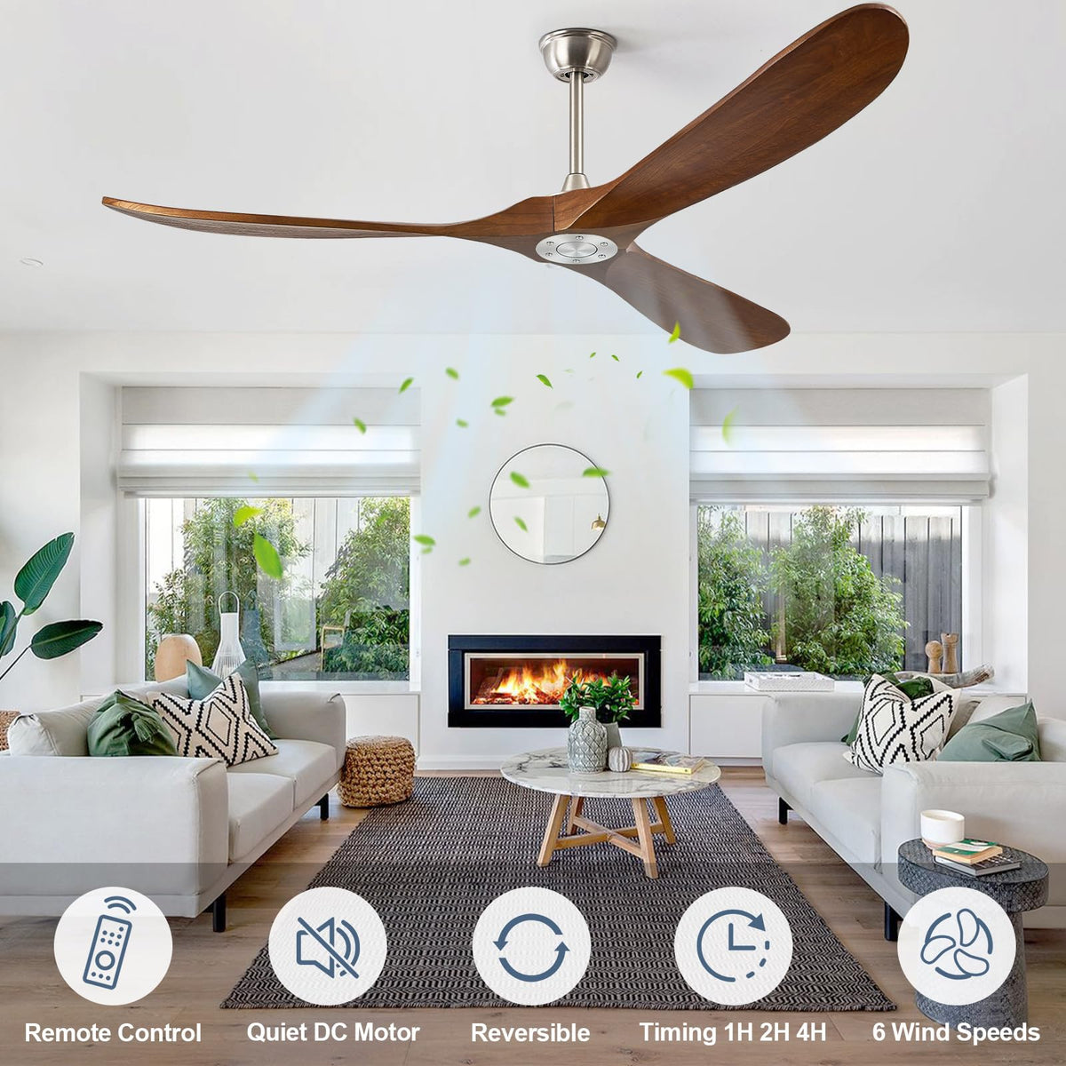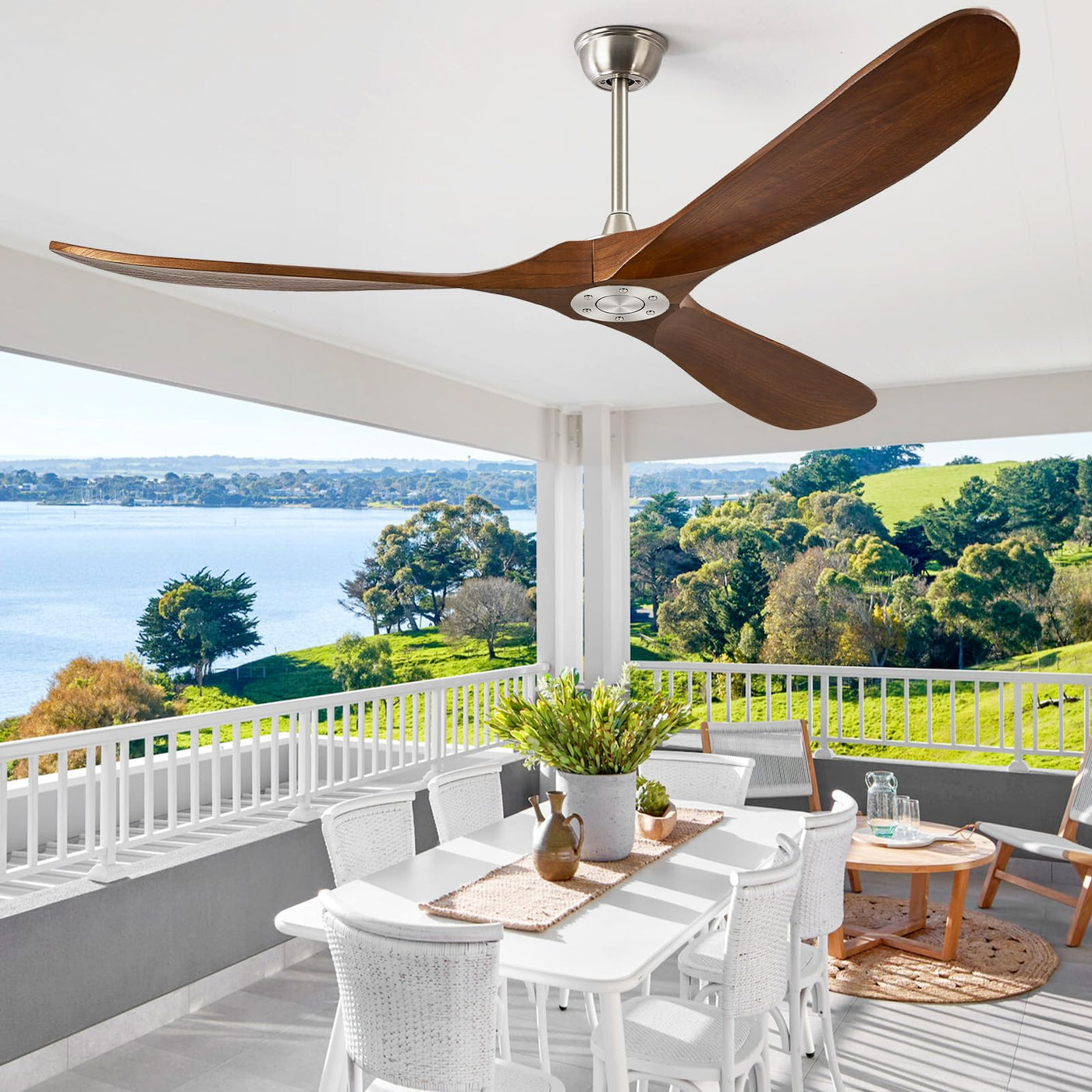 Introducing Our Ceiling Fans Without Lights - A Versatile Addition To Your Living Spaces That Seamlessly Combines Elegance, Innovation, And Comfort. Whether Enhancing Your Outdoor Patios, Farmhouses, Bedrooms, Living Rooms, Dining Rooms, Or Kitchens, This 72-Inch Outdoor Ceiling Fan Promises A Blend Of Style And Performance.Crafted For Elegance And Performance:Embrace The Allure Of Authentic Craftsmanship With Our Solid Wood Outdoor Ceiling Fan. Meticulously Designed And Constructed, This Fan Embodies Natural Elegance While Ensuring Dependable Performance. Its Presence Elevates Your Surroundings, Making It A Perfect Choice For Enhancing Your Living Spaces.Effortless Installation And Versatility:Installing Our Wooden Ceiling Fan Is A Breeze. Most Functional Components Are Pre-Assembled, Simplifying The Process To Just A Few Steps. To Accommodate Different Ceiling Heights, We Provide Poles In Three Sizes - 5'', 10'', And 15''. This Ensures A Tailored Fit For Low, Medium, And High Ceilings.Cutting-Edge Reversible Dc Motor:Immerse Yourself In The Technology Of Our Ceiling Fan. Its State-Of-The-Art Reversible Dc Motor Offers A 75% Reduction In Energy Consumption Compared To Traditional Ac Motors, Promoting Both Efficiency And Sustainability. Noise Levels Under 20 Decibels Ensure Peaceful Surroundings Without Sacrificing Productivity.