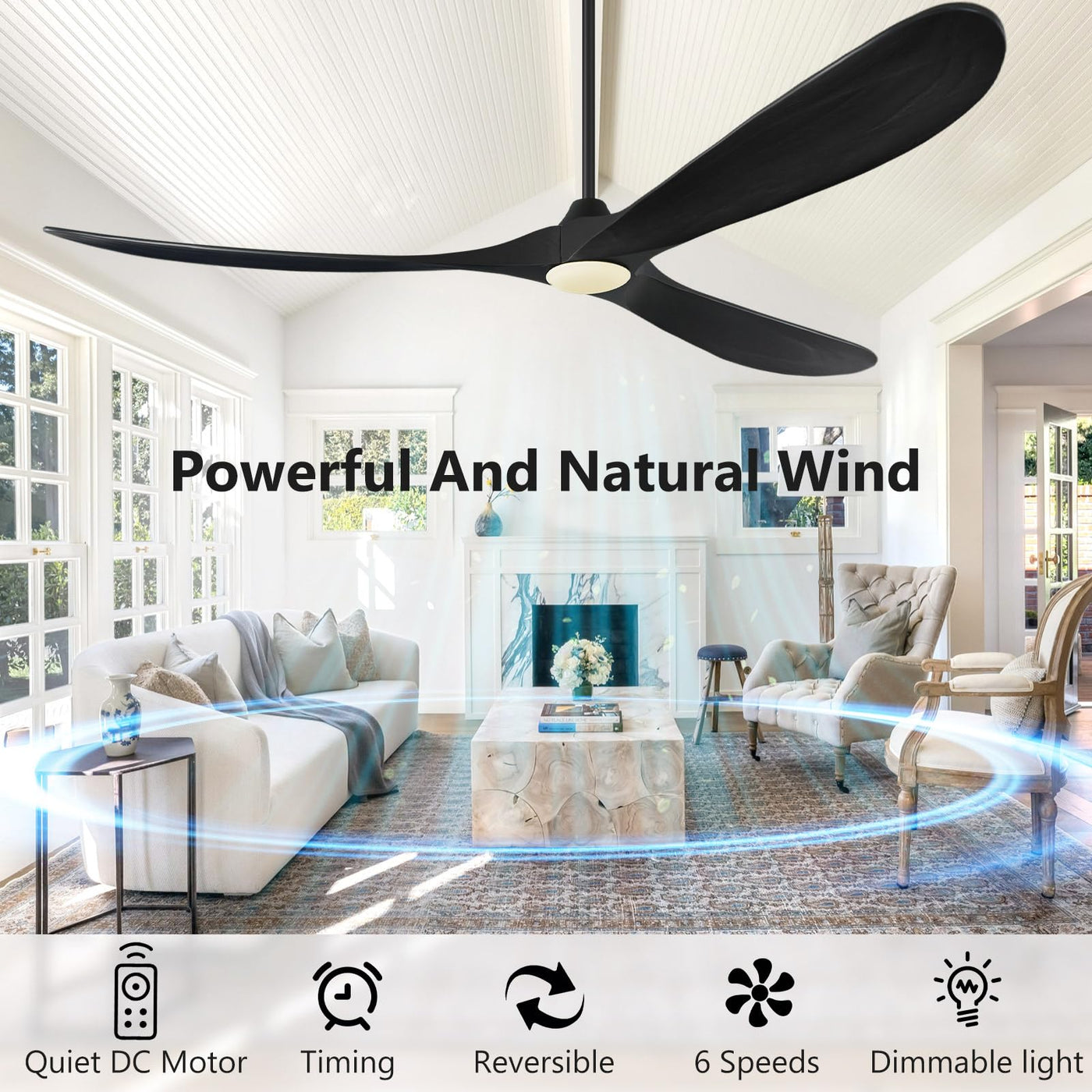 Abz Ceiling Fans With Lights 72 Inch Propeller Ceiling Fan With Remote Control, 3 Blades Black Solid Wood Ceiling Fan For Indo