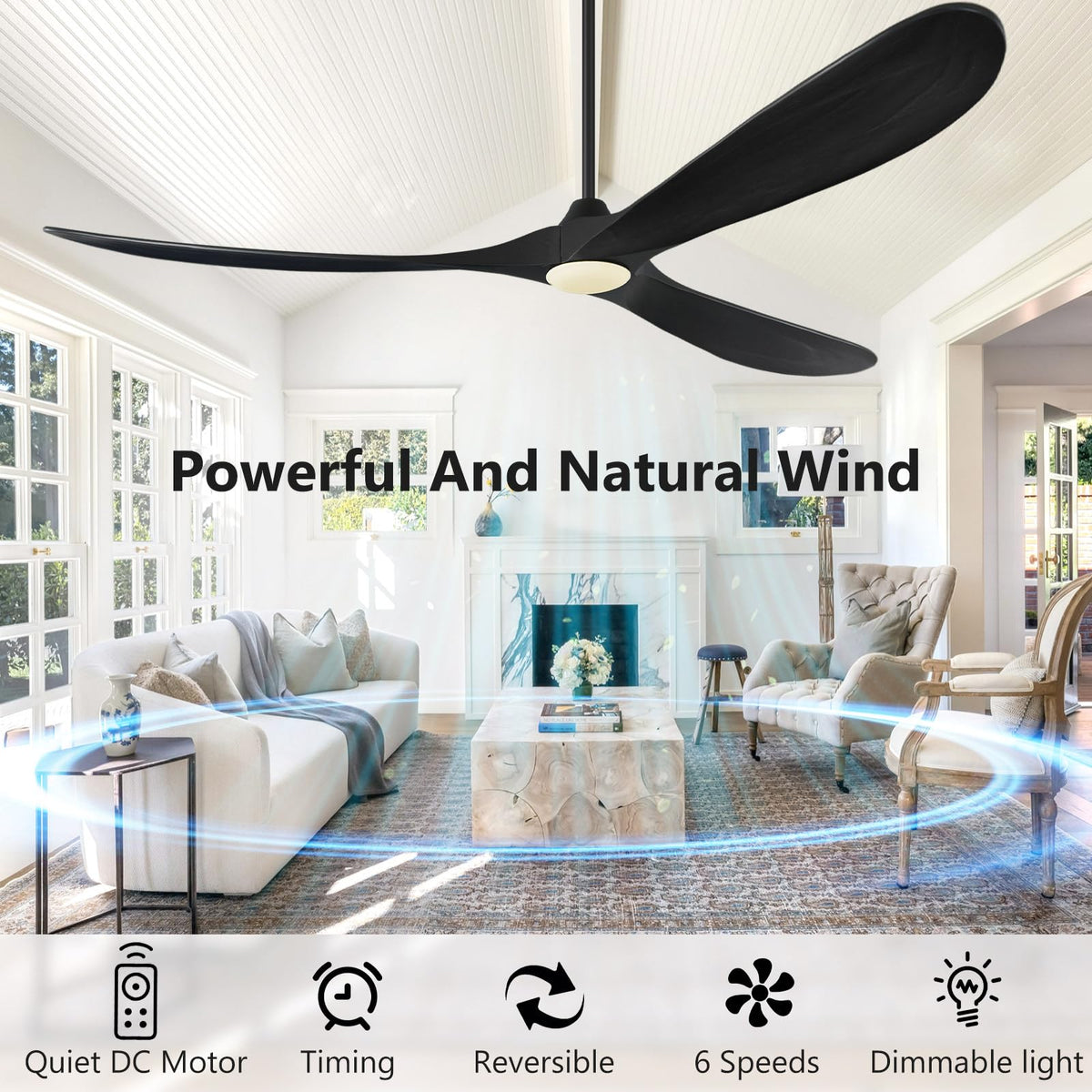 Abz Ceiling Fans With Lights 72 Inch Propeller Ceiling Fan With Remote Control, 3 Blades Walnut Solid Wood Ceiling Fan For Ind