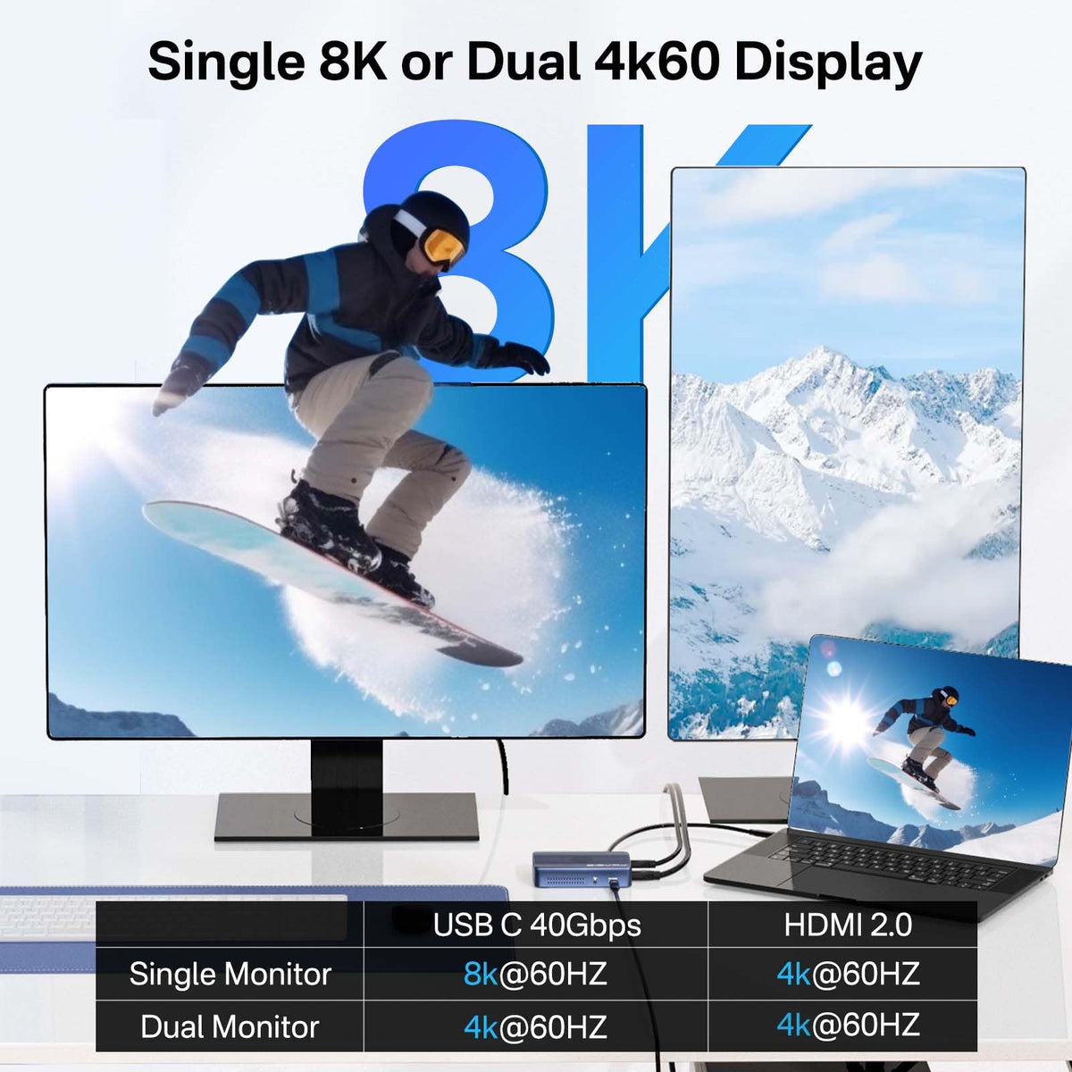 Acasis 40Gbps M.2 Nvme Ssd Enclosure, Cooling Fan, Compatible Thunderbolt 4/3/Usb 4.0, Support Ssd B+M M-Key, Dual-Bay Ssd Enclosure Dual Monitor Support Software Raid, 2 Usbc 40Gbps For M1/M2/Windows