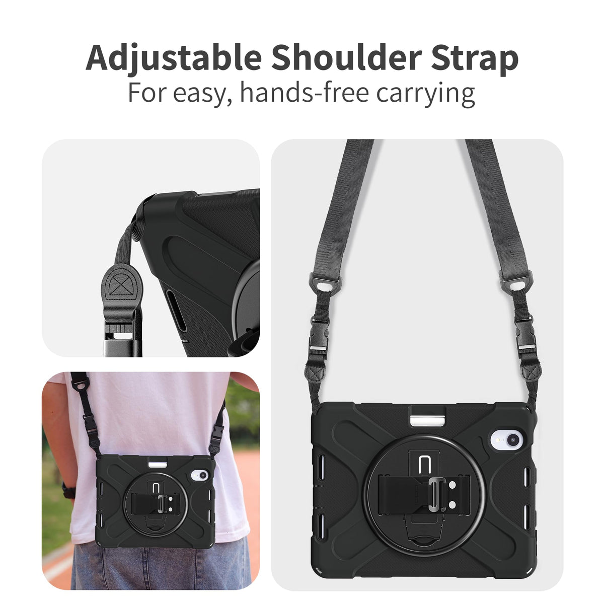Q: What type of protection does the CODi Rugged Carrying Case provide for the iPad Mini 6?A: The CODi Rugged Carrying Case offers 360-degree protection, featuring a durable polycarbonate exterior and thick silicone bumpers on the corners to absorb shocks and protect against drops.