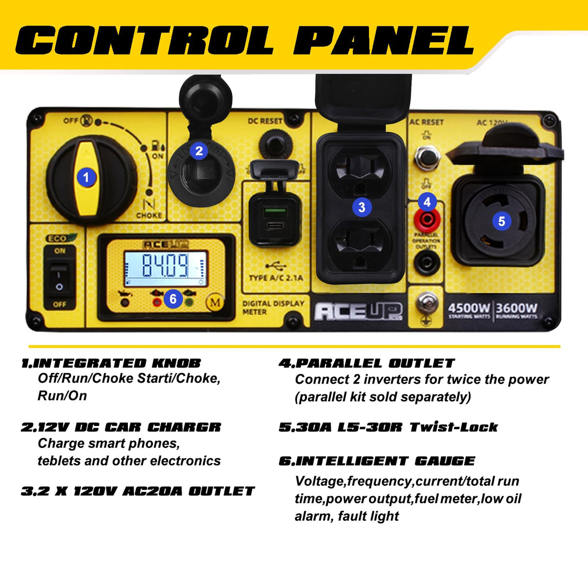 Aceup Energy 4500 Watt Inverter Generator 223Cc, Gas Powered Generator For Home Use, Camping, Epa Compliant