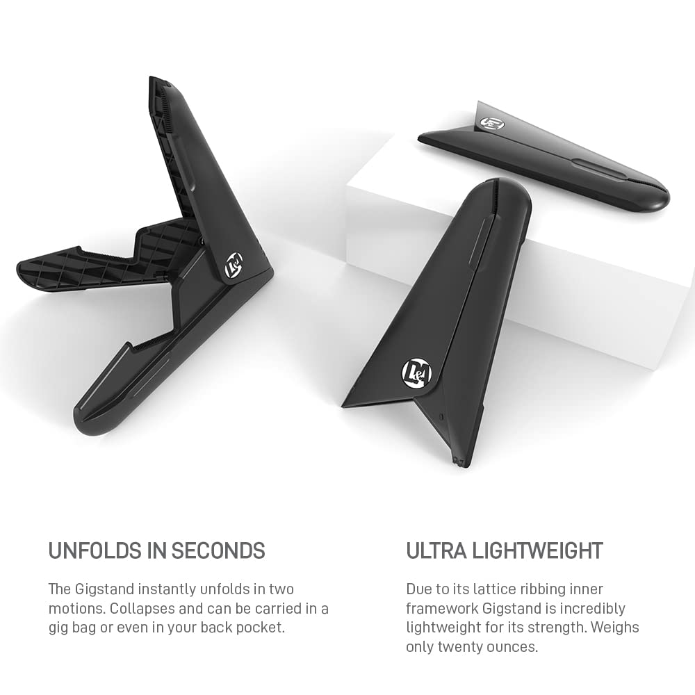 A Best Of Class Guitar Accessory With Its Compact Size, Portability, Durable Construction, And Weighing In At A Little More Than The Average Guitar Cable, The Da Guitar Gear Gigstand Acoustic Is One Of The Most Unique Innovations Developed In Guitar Stands And Accessories The Sleek Design Holds Most Acoustic Guitars, Collapses In Two Simple Steps And Can Be Carried In A Gig Bag Or Even In The Back Pocket Of Your Jeans Perfect When On The Road Or Off, It Unfolds In Seconds For Easy Access The Design Features Lattice Ribbing And Reinforced Joints To Make A Stand So Strong It Can Support Many Times The Weight Of Any Guitar Ever Made, Yet It Only Weighs Around 20 Ounces A Soft Polymer Material Covers All Points Of Contact Between The Da Guitar Gear Gigstand And Your Acoustic Guitar, Ensuring That Your Guitaras Finish Is Protected It Is Safe For All Guitar Finishes Da Guitar Gear Provides Smart, User-Friendly, High Quality Design Solutions For The Passionate Musician Not Only Do They Work Well, They Look Great Too, And Fit Into Your Lifestyle At An Affordable Price So Go Ahead, Feed The Passion Within You