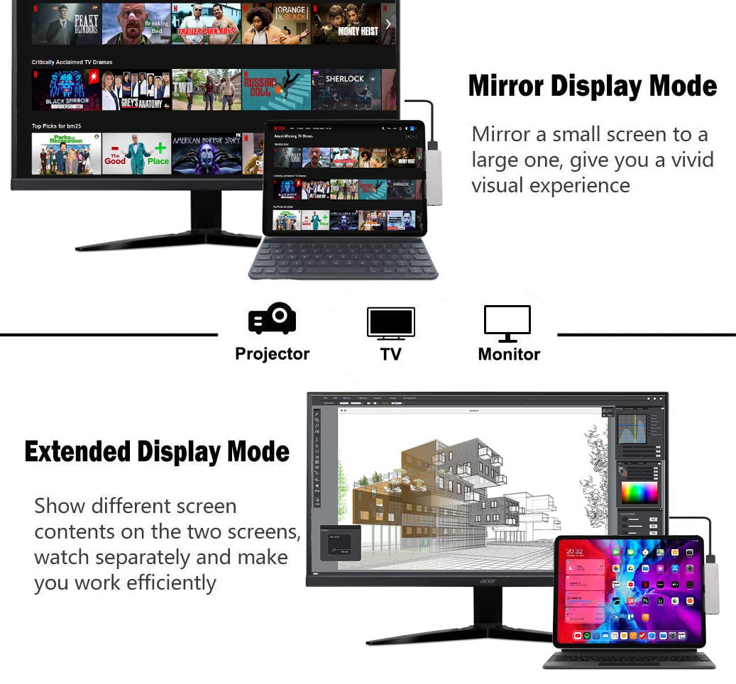 Compatible With 2024/2022/2021/2020/2018 ,Quick Expansion With 4K@30Hz Hdmi Output,3.5Mm Audio Jack,Usb-C Charging And Data Port,Usb 3.0 Port.Maximize Your 'S Capabilities. | Mirror Or Extend Your Screen With 4K Hdmi Output And Directly Stream 4K@30Hz Uhd Or Full Hd 1080P@60Hz Video To Hdtv,Monitors,Or Projectors.Enable You Share Stunning Movies/Games On A Bigger Screen!Ideal For School,Office,Home,And Game. | Usb 3.0 Port:You Can Connect Usb Flash Drive,Hard Drive,Keyboard,Mouse And More Usb Devices And Transfer Data At Super Speeds Of 5Gbps.Quickly Access Your Image/Video Throught Bulit-In Sd/Micro Sd Card Slot.Type-C 5Gbps Data Port For Transfer Data Via Type-C Cable Or Flash Drive. | 3.5Mm Audio Jack:Connect Earphone,Headphone Or Speaker.Support Microphone Input And In-Line Volume Control On Earphone/Headset.Usb C Power Delivery Port Speeds Up To 60W,Charging While Working. | Features A Removable Grips That Can Enhance Seamless Contaction Between Ipad And The Hub,Not Slip Off Easily While Moving.Work With 2024/2022/2021/2020/2018 With Smart/Magic Keyboard On It.Pefect Solution For Working From Home,At The Office Or On The Road.