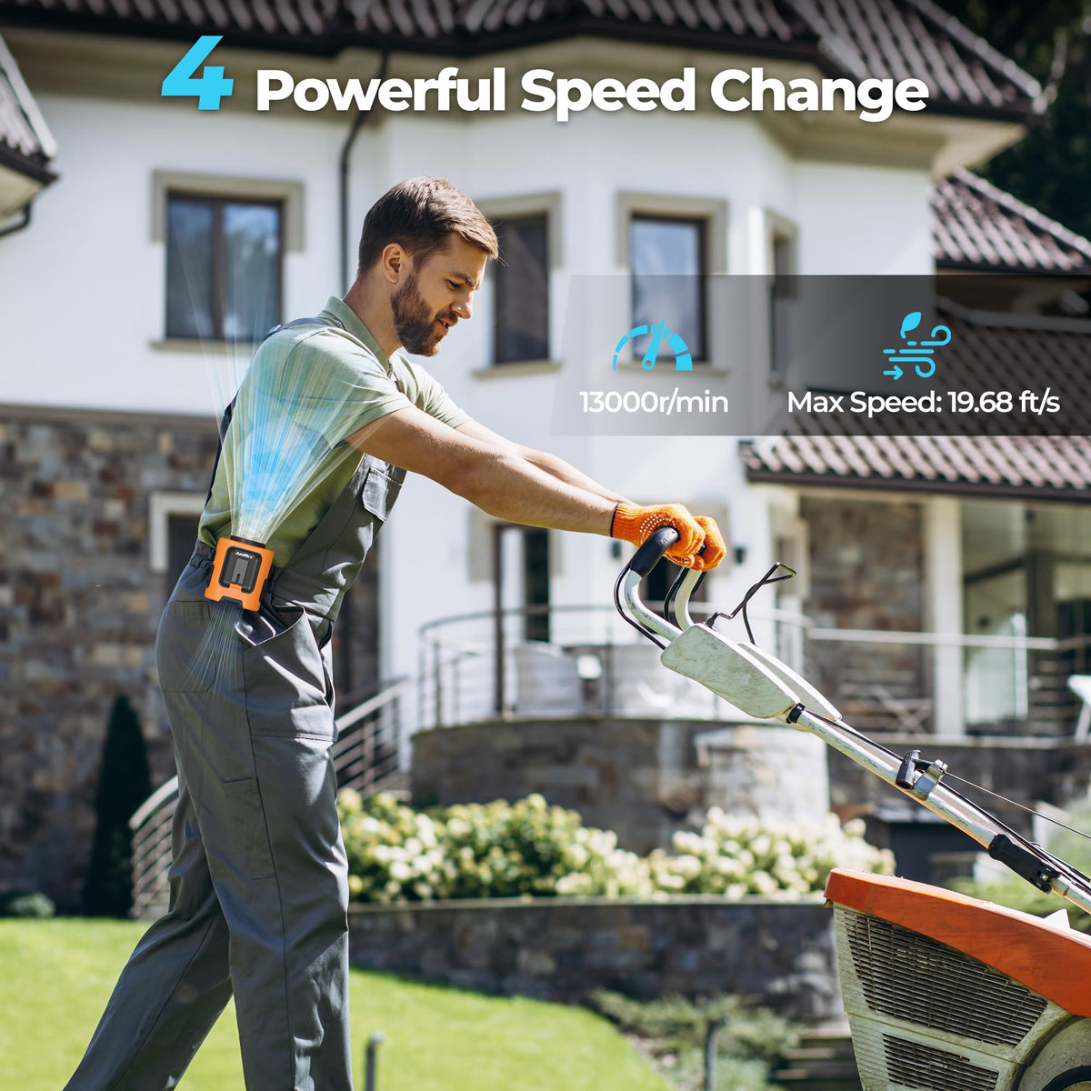 Stay Cool And Comfortable On The Go With This Versatile Portable Waist Fan. With An Impressive 24-Hour Working Time And Four Adjustable Speed Settings Up To 13000Rpm, This Hands-Free Cooling Solution Delivers Powerful Airflow When You Need It Most. The Convenient Clip-On Design Securely Attaches To Your Belt Or Shirt, Making It Perfect For Outdoor Activities, Work Sites, Or Camping Adventures. The Rechargeable Battery Ensures Consistent Performance Throughout Your Day, While The Adjustable Speeds Let You Customize Your Cooling Experience. This Personal Fans Compact And Lightweight Design Wont Weigh You Down, Yet Provides Strong, Consistent Airflow To Keep You Comfortable In Warm Conditions. Whether Youre Working Outdoors, Enjoying Nature, Or Tackling Projects Around The House, This Portable Fan Offers Reliable Cooling Without Occupying Your Hands.