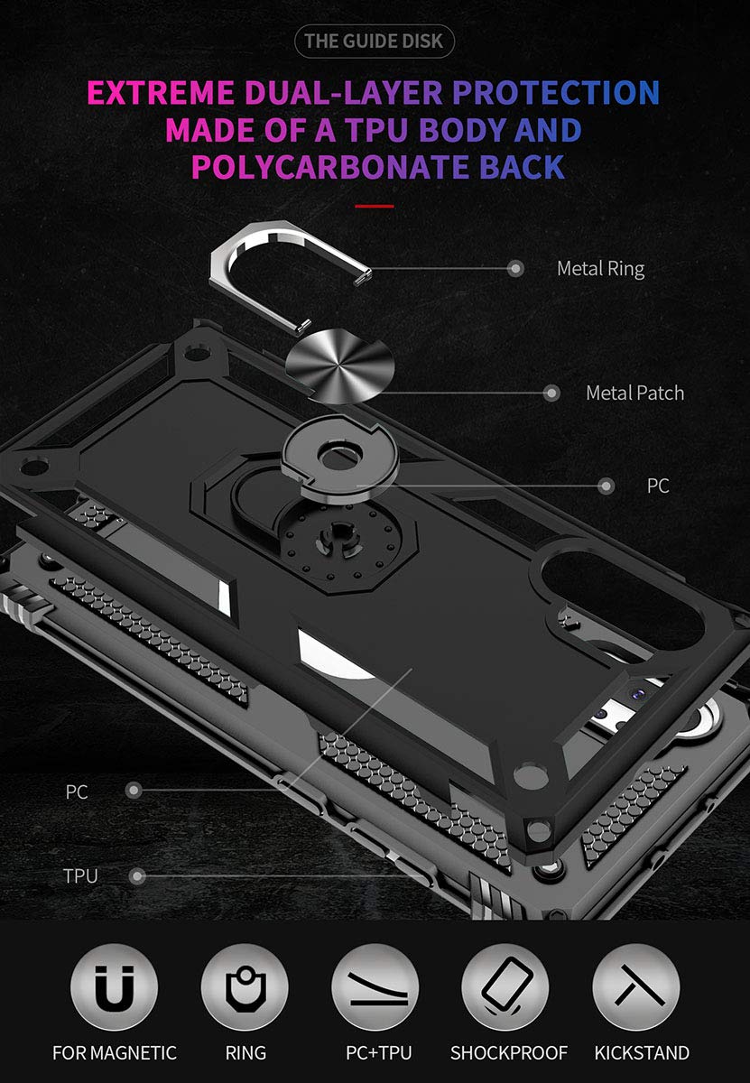 Meets Military Grade 810 1-G Compliancy,Certified To Protect Your Phone 360A Rotable Kickstand Design Dual Layer Hybrid Ultra Protective Case Unique Shock-Absorption Design,The Use Of Air Cushion Technology To Protect All Corners Raised Bezels For Enhanced Protectiorr Packed Into A Solid Frame With A Timeless Look The Case Can Be Used With The Magnetic Car Bracket Package Include:1X Case