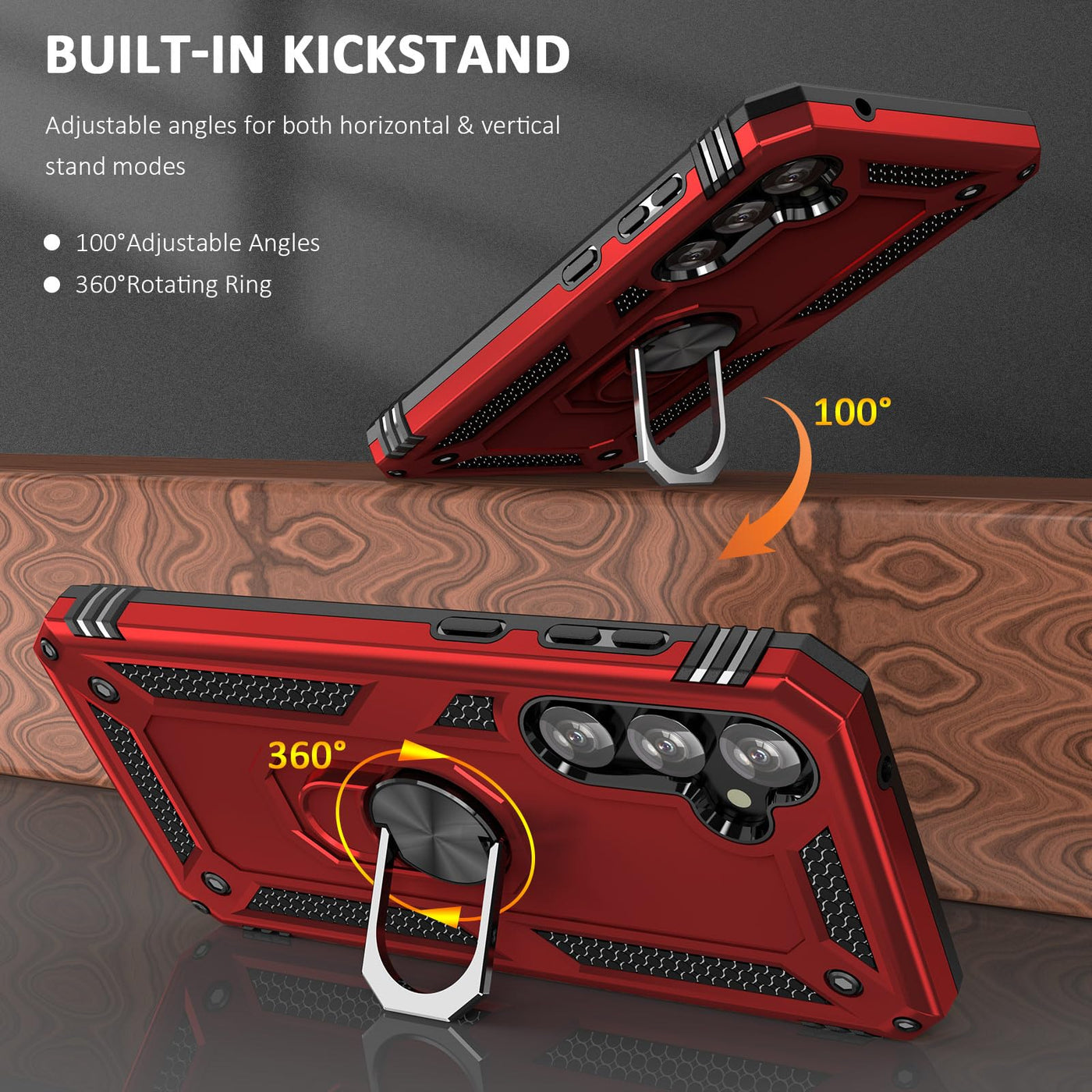 Meets Military Grade 810. 1-G Compliancy,Certified To Protect Your Phone. ? 360 Rotable Kickstand Design. ? Dual Layer Hybrid Fe Protective Case. ? Unique Shock-Absorption Design,The Use Of Air Cushion Technology To Protect All Corners. ? Raised Bezels For Enhanced Protectiorr. ? Packed Into A Solid Frame With A Timeless Look. ? The Case Can Be Used With The Magnetic Car Bracket. Package Include:1X Case.