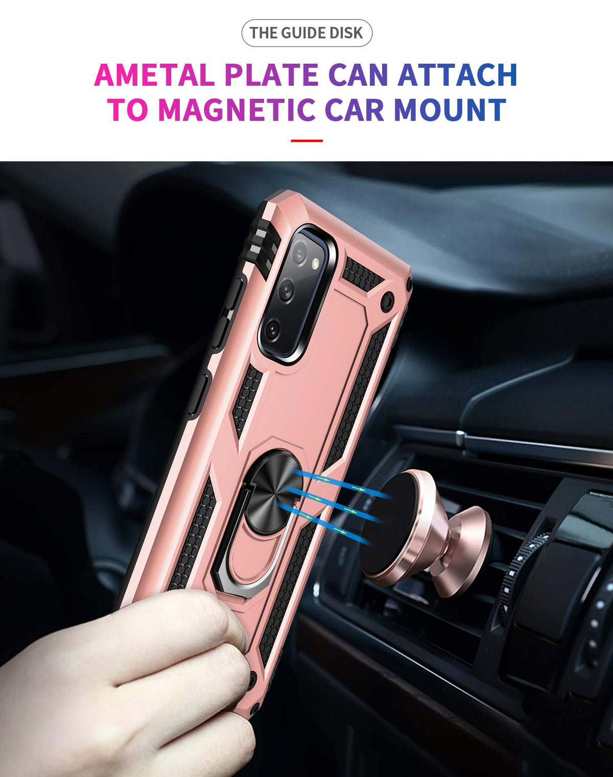 Addit Samsung S20 Fe Case, Military Grade, Heavy Duty, With Kickstand Ring & Magnet Car Mount - Rose Gold