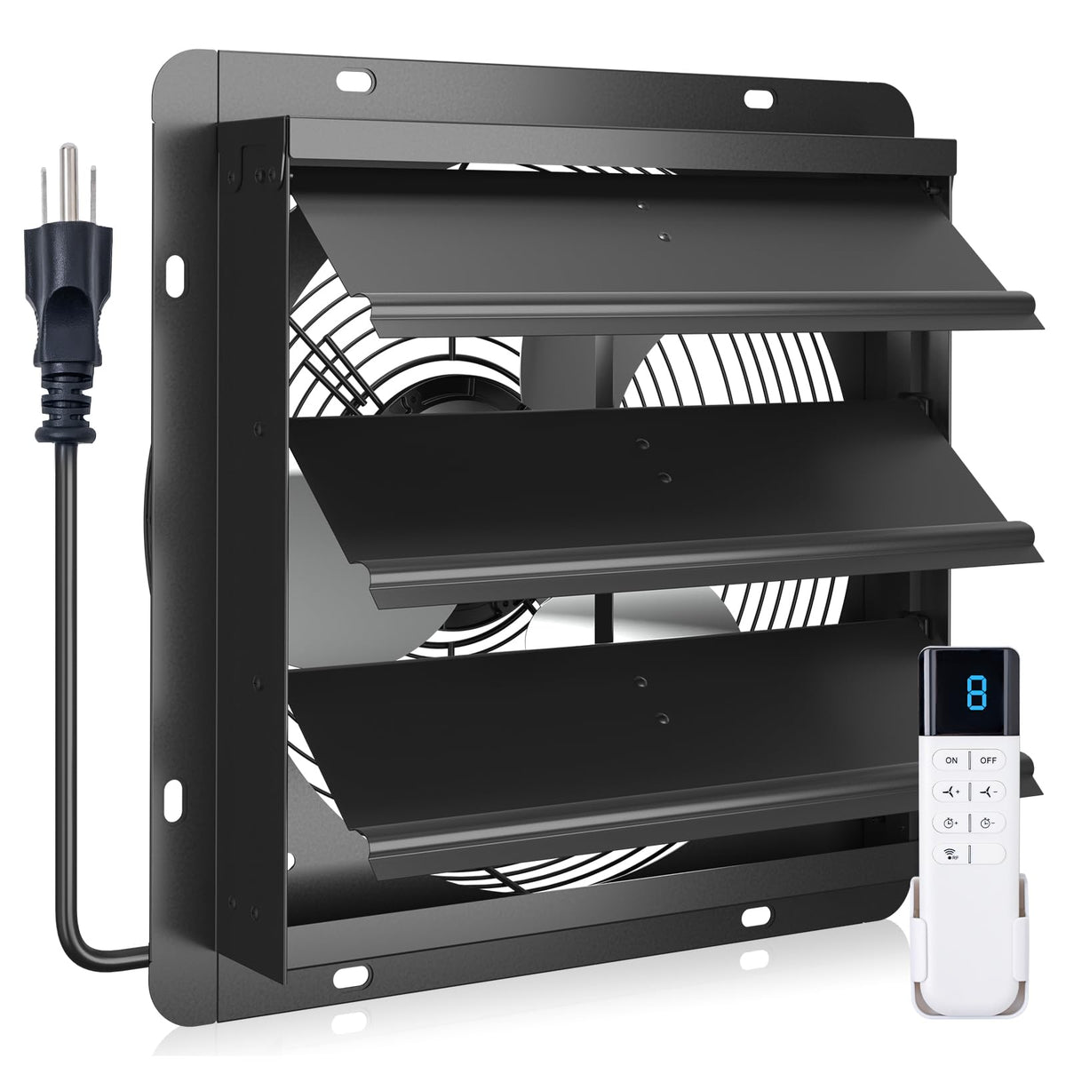 Addlon 12 Shutter Exhaust Fan Wall Mounted With Ec Motors And Remote Control, Timer, 8 Speeds, 1250Cfm, Low Noise, Easy To Install, Plug In Ventilation Fan For Garages, Shops, Greenhouse, Attic