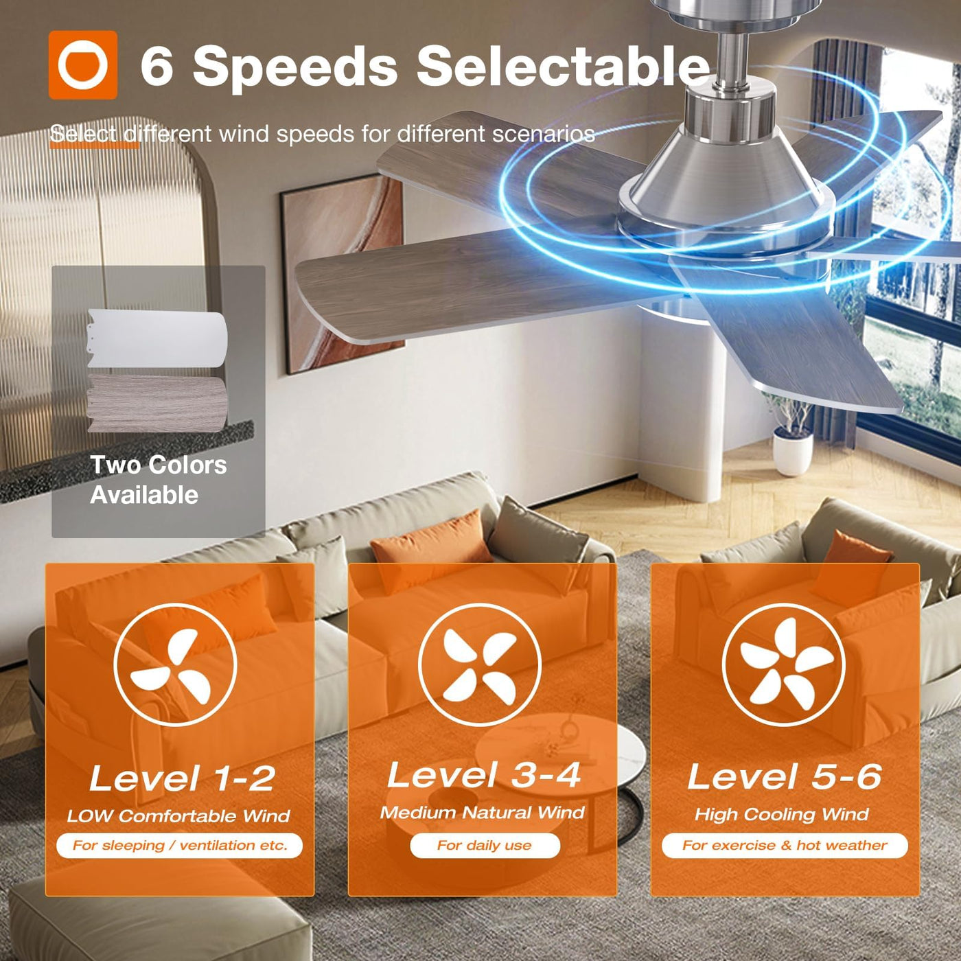 Q: Is the light on the ceiling fan adjustable?A: Yes, the light on the addlon Ceiling Fan is fully dimmable, allowing you to adjust brightness from 10% to 100%. It also offers three color temperature options: warm white (3000K), natural white (4000K), and cold white (6000K) to suit different occasions.