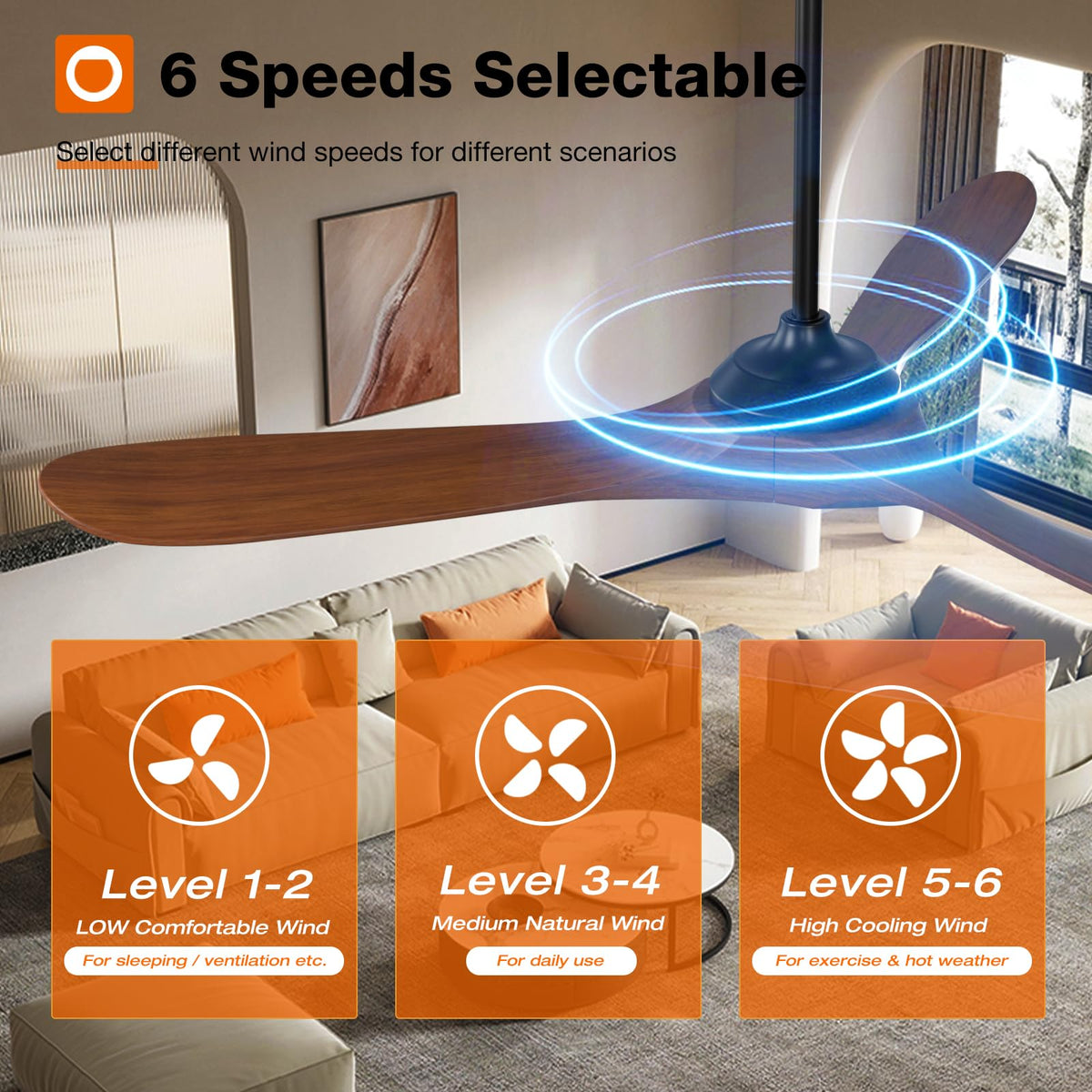 Addlon Ceiling Fans With Lights, 60 Inch Indoor/Outdoor Ceiling Fan With Remote Control, Reversible, 3 Wood Blades, 6 Speeds, 3C