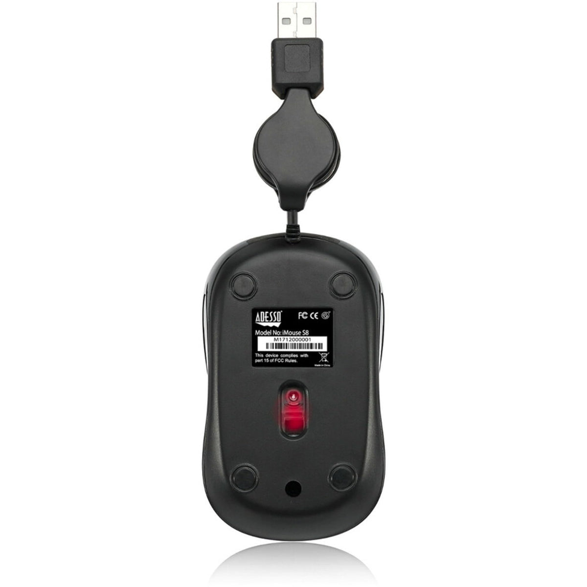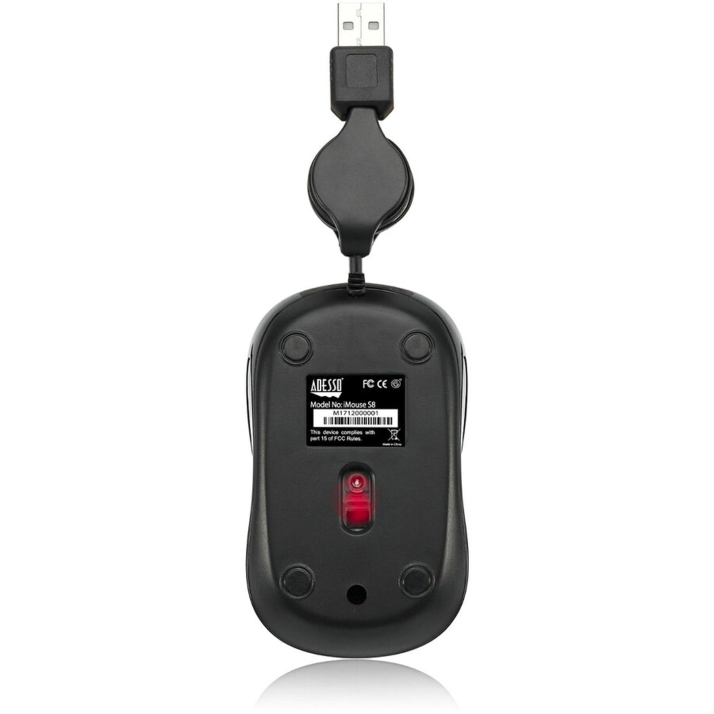Adesso Ergonomic Imouse S8 Retractable Optical Usb Mouse (Black)
