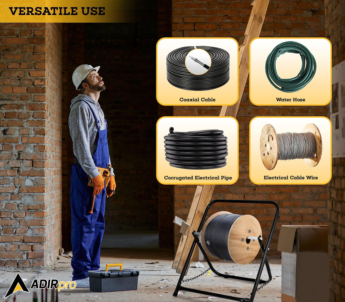 Q: What materials is the AdirPro Cable Caddy made from?A: The cable caddy is constructed from sturdy tubular steel, ensuring long-term durability and stability during use.