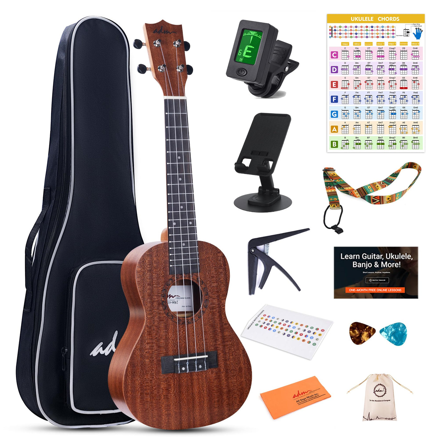 Adm Concert Ukulele Beginner Kit Mahogany Hawaiian Wood Ukelele Bundle Ukalalee Set With Uke Free Starter Lessons For Kids Stude