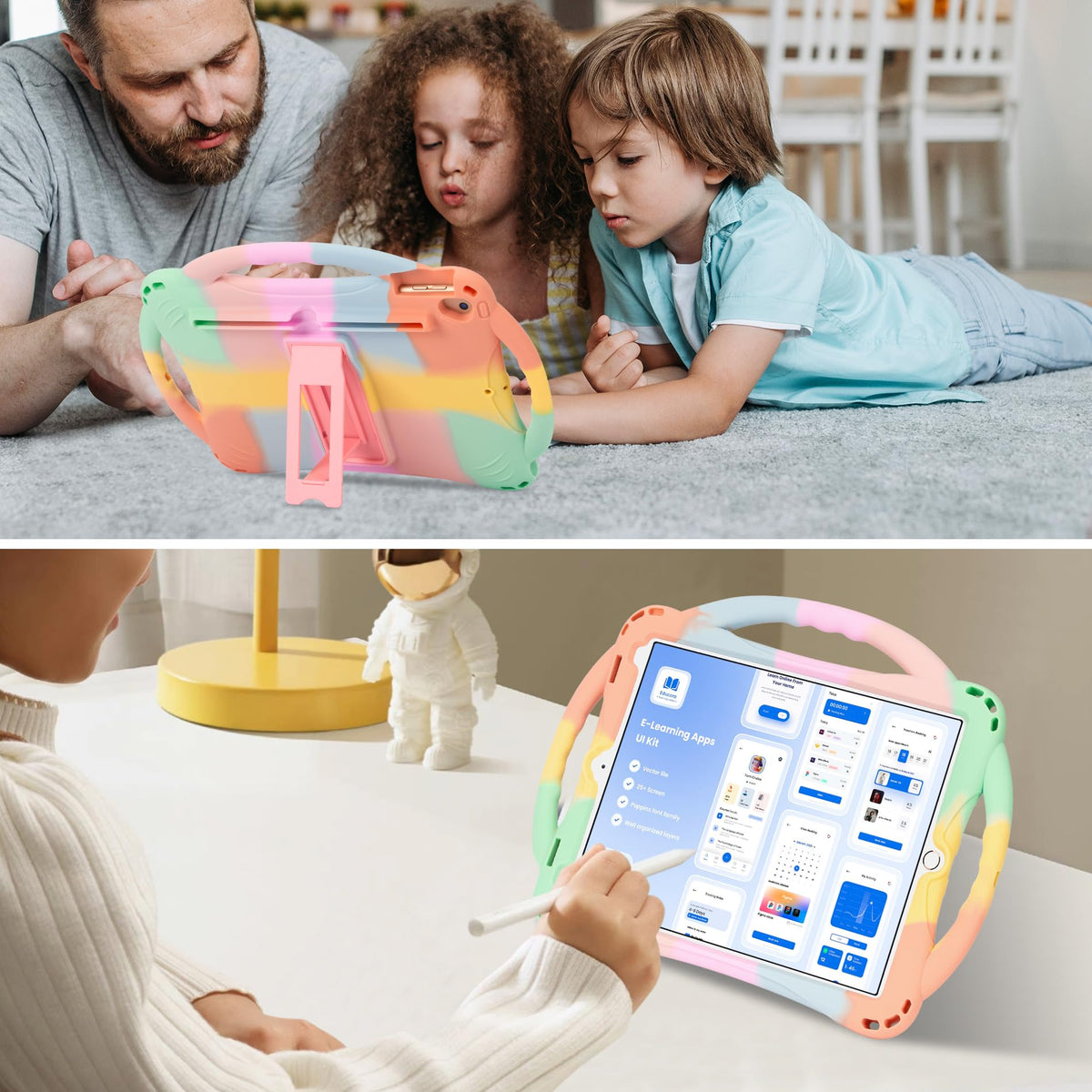 Q: How does the kickstand feature work?A: The built-in kickstand allows for hands-free viewing, making it easy for kids to watch videos or use their iPad without needing to hold it.