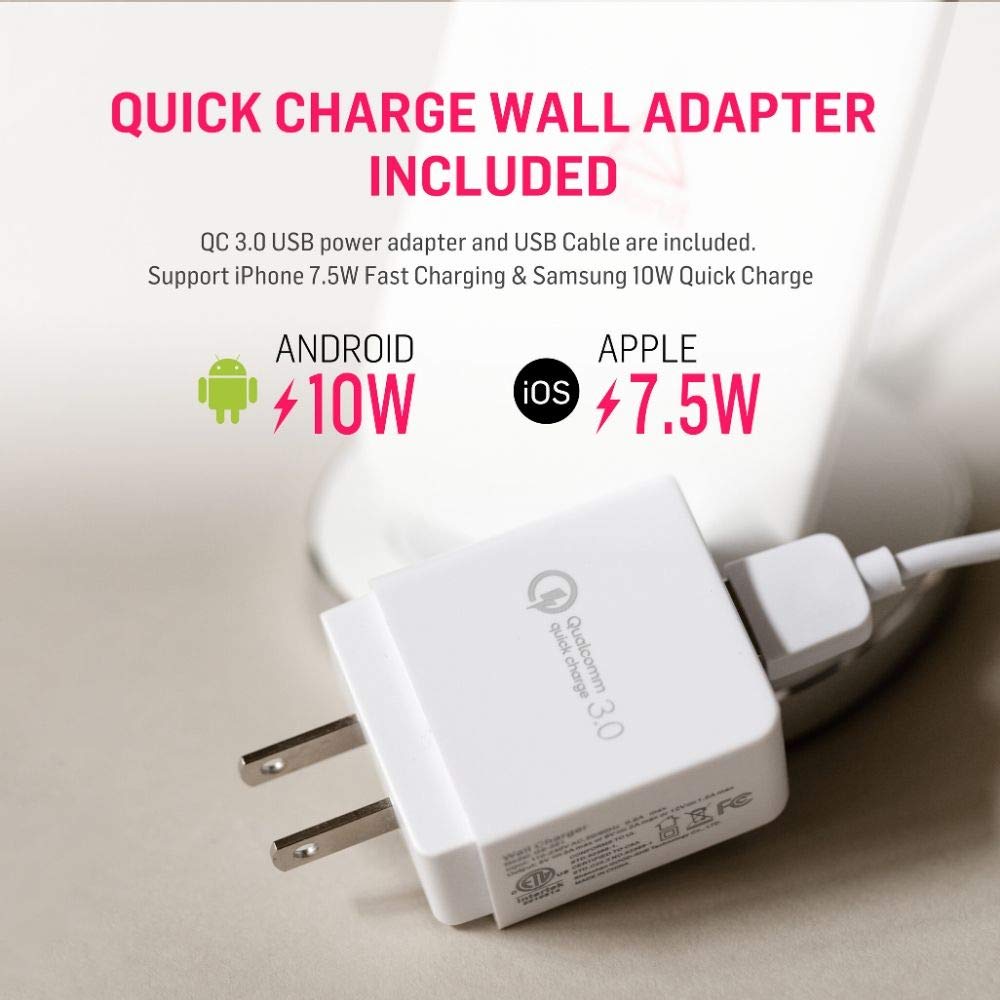 Wirelessly Fast Charge Any Qi-Enabled Smartphone From Iphone X To Samsung Galaxy S9. The Adonis Wireless Fast Charging Stand Provides A Comfortable View While Delivering Up To 10-Watts Of Wireless Power To Your Device. Includes A Qc 3. 0 Usb Power Adapter And Fast Charging Usb Cable.