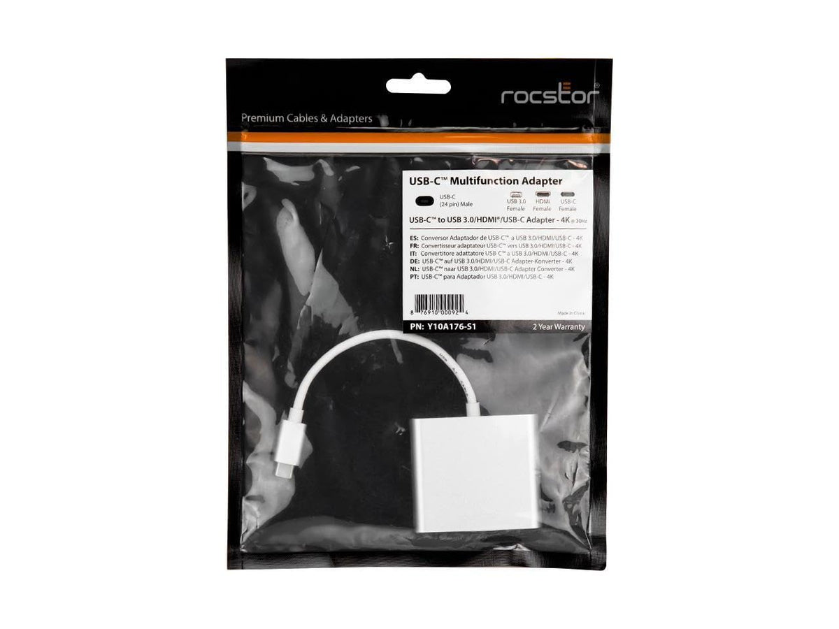 Rocstor Y10A176-S1 Usb-C To Usb 30 Hdmi Usb-C 31 Multifunction Adapter 15Cm Silver