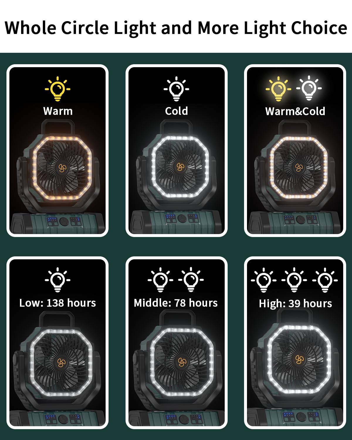 Adust Camping Battery Operated Powered Fan With Led Lantern Light 20000Mah Rechargeable Portable, Oscillating Fan With 360 Rotat