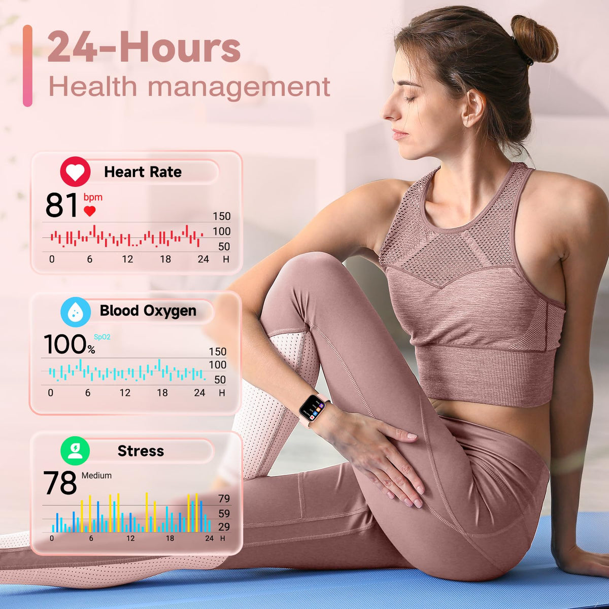 Q: What are the main health monitoring features of the AEAC Smart Watch?A: The AEAC Smart Watch includes a heart rate monitor, SpO2 (blood oxygen) measurement, stress tracking, and sleep monitoring. It provides continuous 24-hour monitoring to help you stay informed about your health.