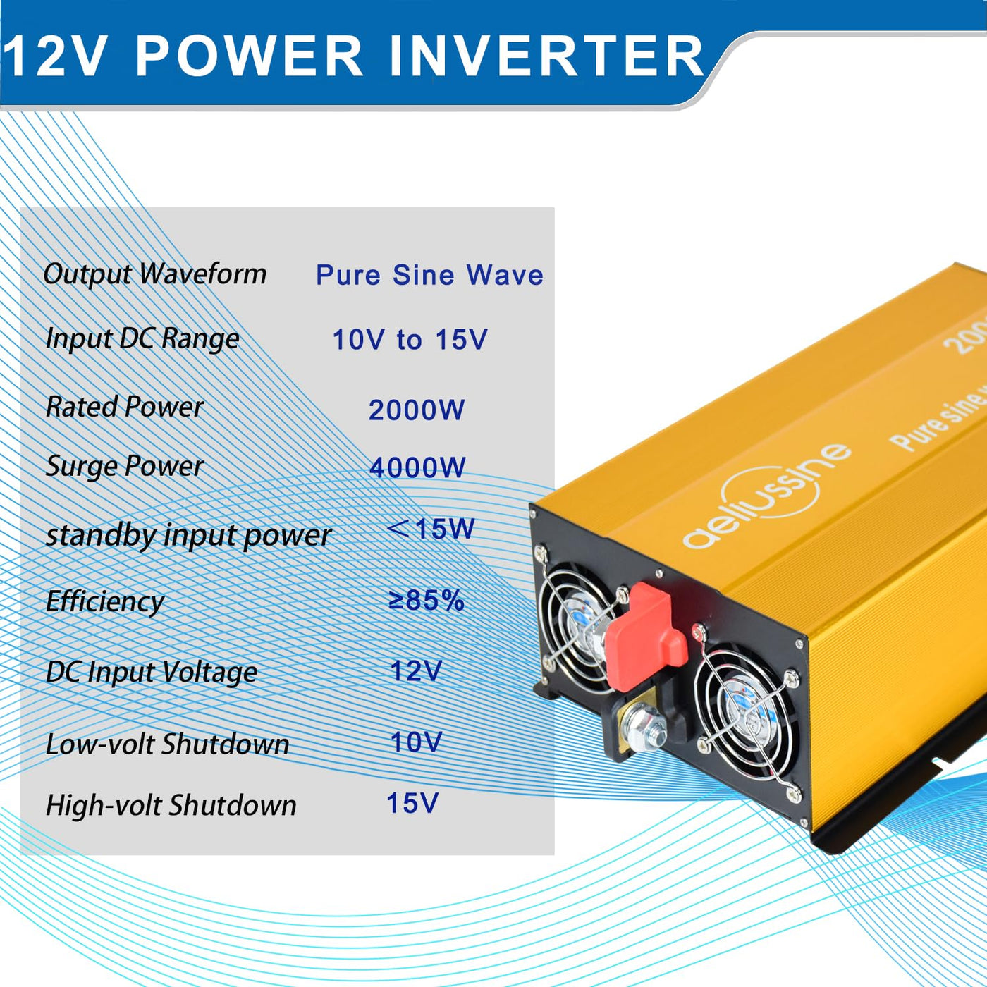 Aeliussine 2000W Pure Sine Wave Inverter-12V Dc To 110V 120V Ac Power Converter With 2 Ac Outlets, 12 Volt Power Inverter For Tr