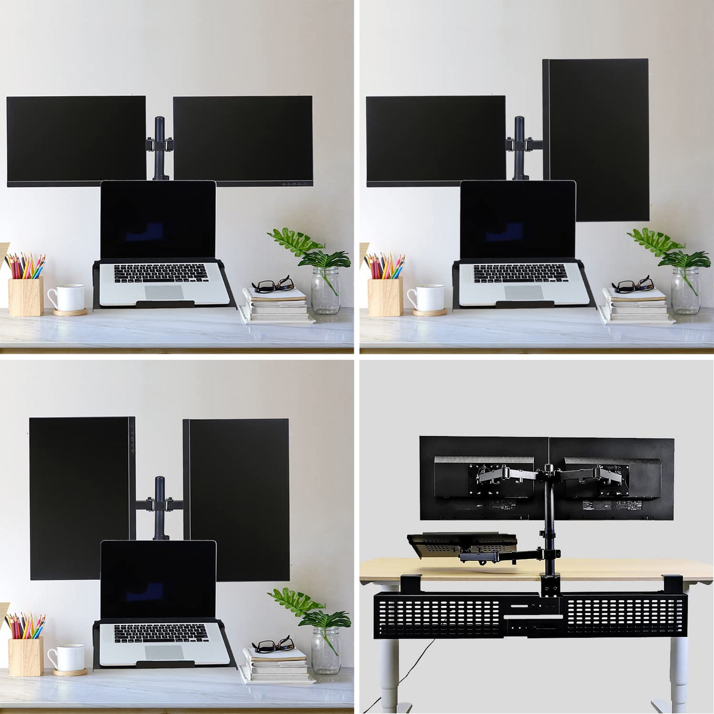 This Dual-Monitor And Laptop Desk Mount Combo Stand Is Designed To Maximize Your Viewing Experience And Work Efficiency. Raise Your Monitors And Laptop To An Ergonomic Position, Saves Desk Space And Relieve The Strain Of Your Neck And Wrist While Typing. You Can Install Two Monitors And A Notebook With The Tray Or Install An Additional Monitor Without The Tray For Triple-Monitor Configuration.