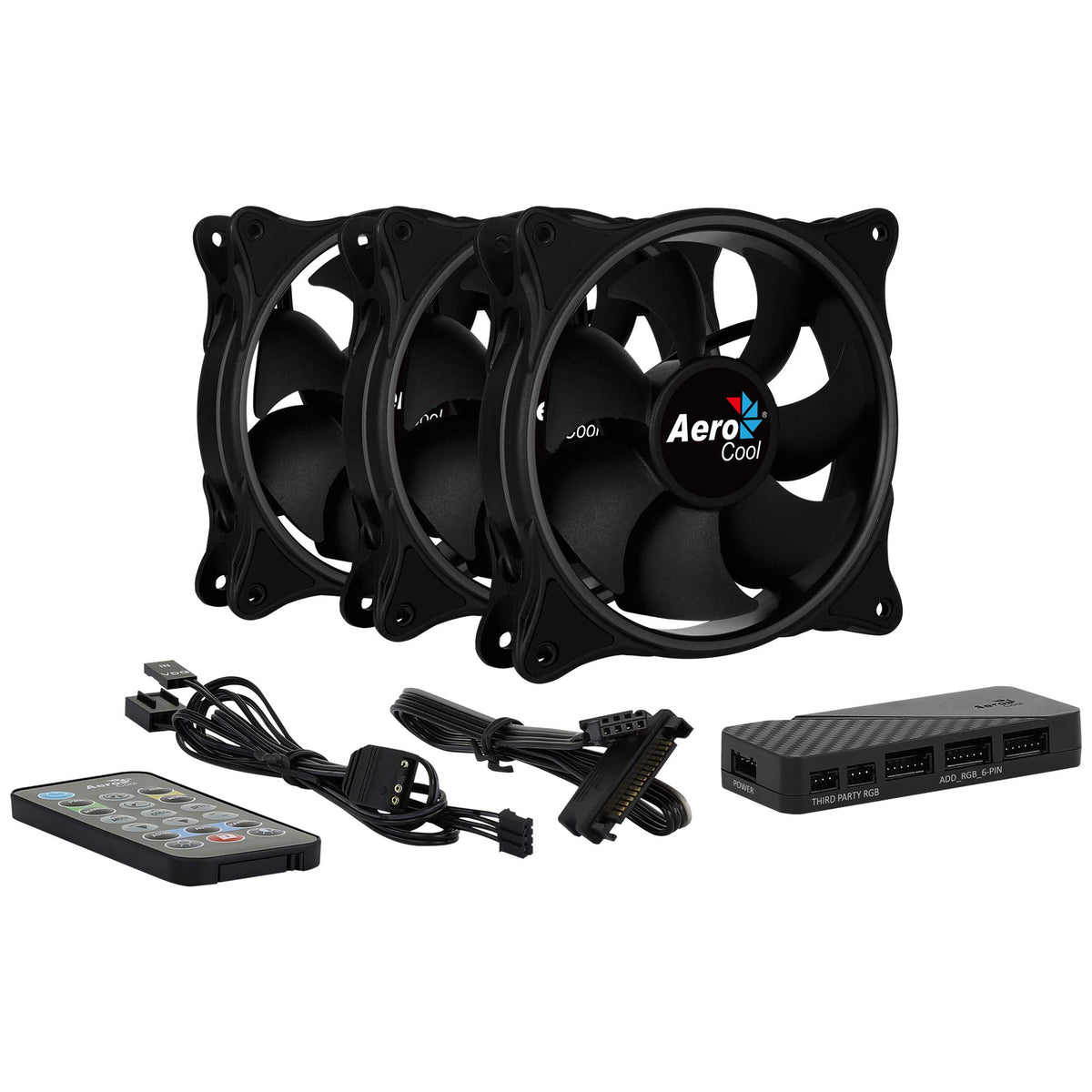Aerocool Eclipse 12 Pro Bundle - 3 X Argb Fans 120Mm, 1 X H66F Hub, Remote Control, Rgb Led Dual Slim Ring Lighting, Includes 6-