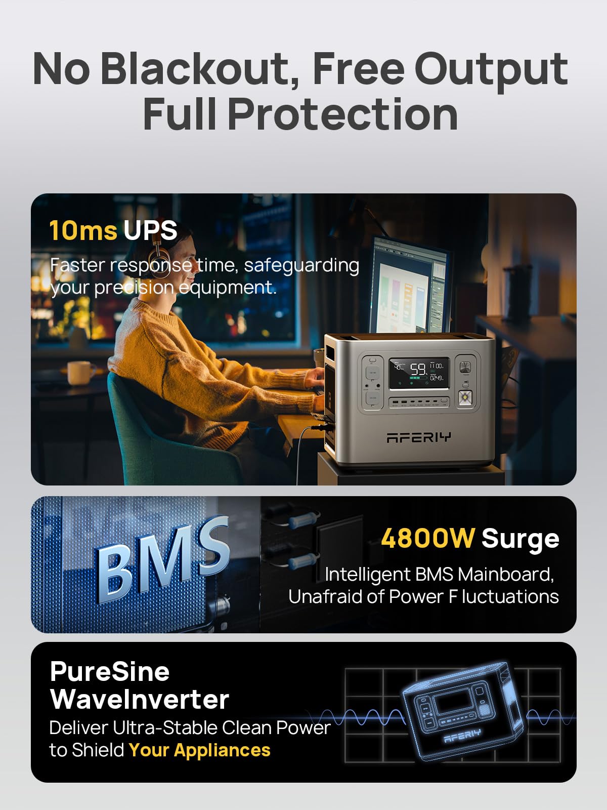 2400W Output For All Your Essentials:With A Robust 2400W Output (4800W Surge) And 16 Versatile Ports, The Aferiy P210 Can Power Everything From Full-Size Refrigerators And Medical Devices To Laptops And Portable Coolers. Whether Youre At Home During A Power Outage, On An Rv Adventure, Or Working Off-Grid, This Portable Power Station Is Your Reliable Energy Source.