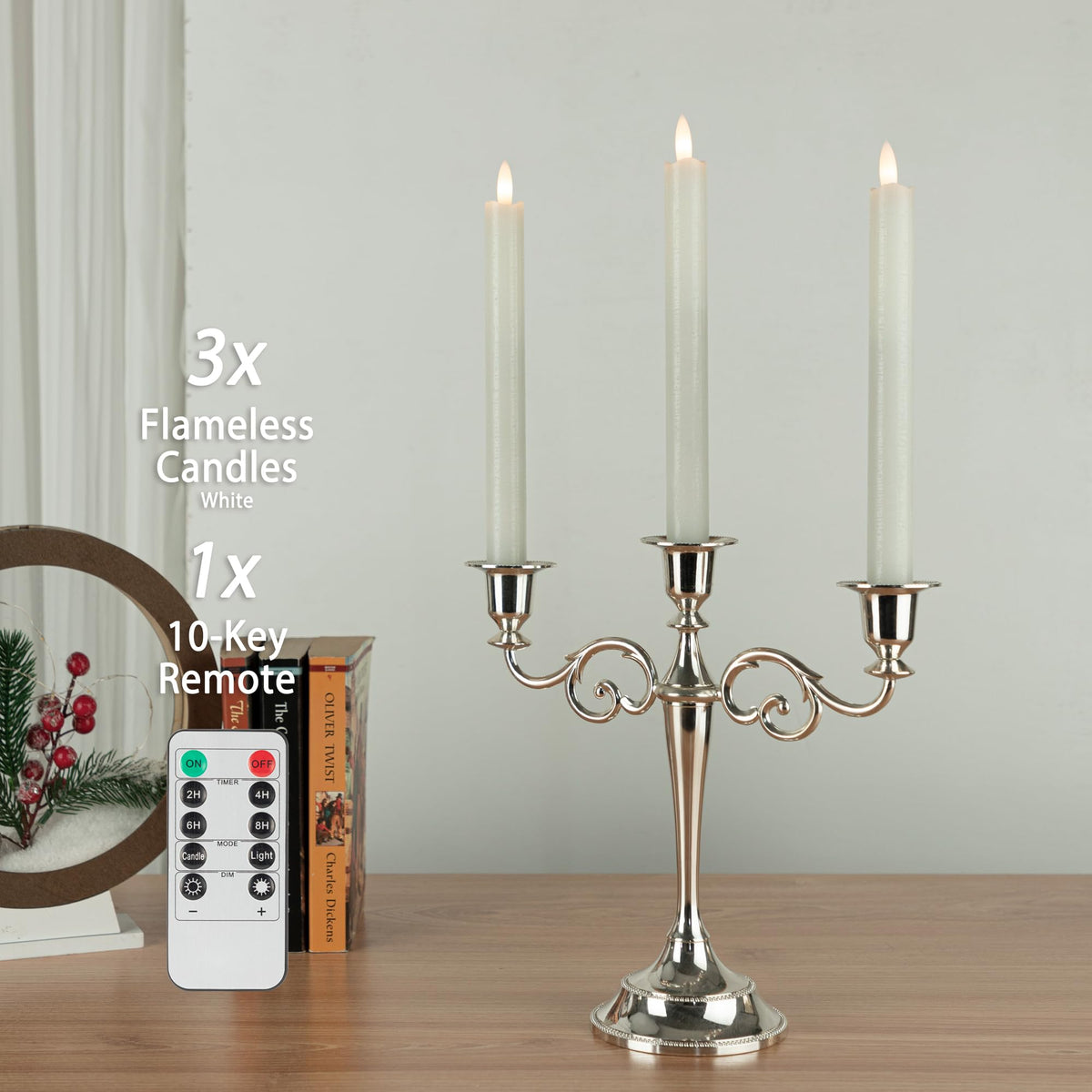 Afineth Create A Romantic Atmosphere For You. Flameless Taper Candles Specification: Candle Color: White Candle Wick Type: 3D Wick Candle Material: Real Wax With Led Light Light Color: Warm Light Remote:1 X 10-Key Remote Control Switch Type: Push Switch Battery Operated: 2 Aaa Batteries(Not Included) Features: Flameless: Realistic Flame, With 3D Wick, These Flickering Taper Candles Perfectly Simulating The Real Flame, Emitting A Nature Flickering Warm Light For A Romantic Atmosphere. Flickering: With Two Light Modes, You Can Switch These Candles From Steady Light To Flicker And You Can Also Adjust The Brightness, Meet Various Decorative Needs. Timer: 2/4/6/8 Hours Timer, The Led Taper Candles Will Cycle Every 24 Hours Once Set. Remote: With 10-Key Remote Control, You Can Operate These Taper Candles Easily. 100% Safe For Family: No Fire, No Smoke, No Dripping Wax. Perfect Decoration Led Candles: These Led Candlesticks Are A Great Alternative To Real Candles, They Can Be Placed In Your Favorite Lanterns, Sconce, The Fireplace, Windowsill, Table Centerpiece, Bedside Table, Porch, Garden And Anywhere You Might Want To Put Them. Led Flameless Candles Also Can Be Widely Used In Evening Parties, Wedding, Birthdays, Easter Parties, Halloween, Thanksgiving, Christmas. Package Include: 3 X Flameless Candles 1 X 10-Key Remote Control 1 X User Manual