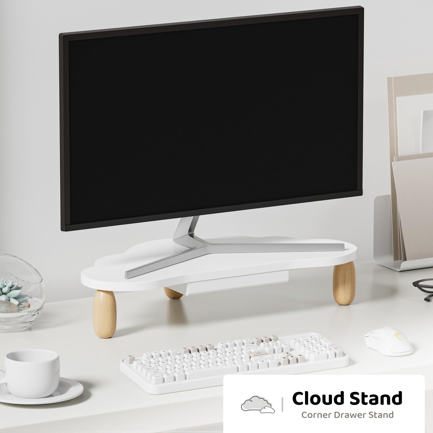 Afooyo Monitor Stand Riser,Cloud Shaped Sturdy Wood Computer Monitor Stand Wirh Drawer, Monitor Stand Riser, Multi Purpose Deskt