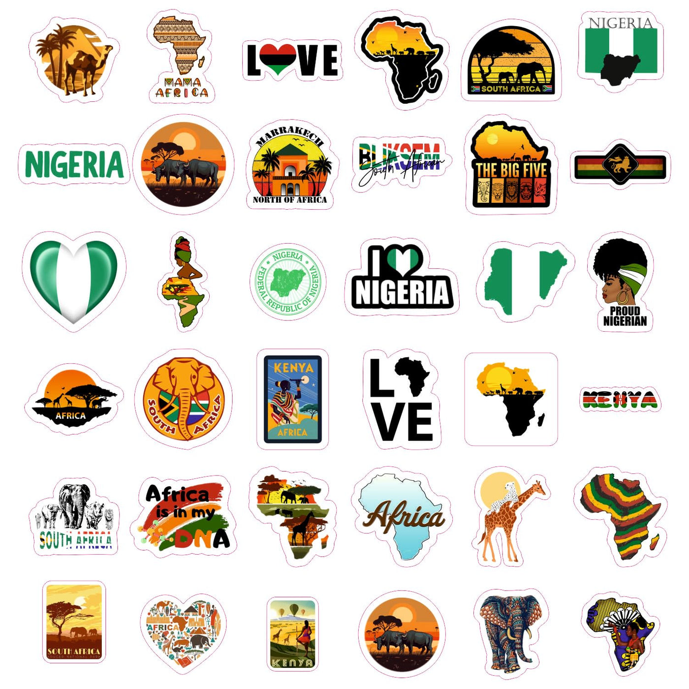 High Quality - You Can Be Sure That Only High-Quality Vinyl Is Used For Africa Stickers. Our Stickers Are Made Of Durable Vinyl Material, Ensuring Long-Lasting Adhesion And Vibrant Colors. | Sticker Sheets - Africa Sticker Pack Contains Several Sheets. Sticker Sheets Are Less Likely To Get Damaged Or Bent Compared To Loose, Cut-Out Stickers. | Waterproof - Africa Stickers Are Designed To Be Waterproof, So They Are Perfect For Use On Water Bottles And Outdoor Items. | Perfect Gift - Surprise Your Friends And Family With These Fun And Expressive Africa Stickers, Perfect For Any Occasion. Stickers Are A Great Gift For Anyone Who Loves Personalizing Their Belongings. | Decor - Perfect For Decorating Laptops, Phones, Skateboards, Luggage, Bikes And More. Use Them As Africa Stickers Party Favors And Africa Stickers Party Decorations. Let Your Creativity Run Wild With Our Diverse Sticker Designs.