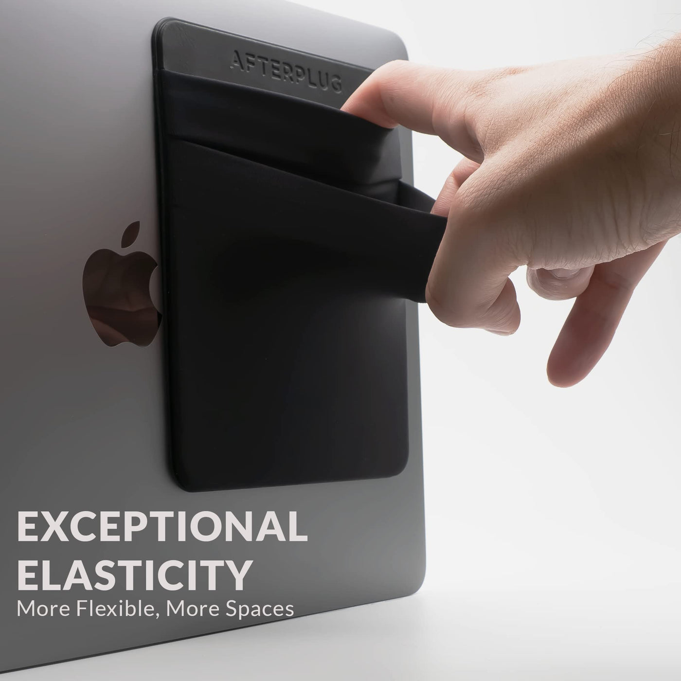 Afterplug 2 Pocket Adhesive Pouch For Laptop, Compatible With External 2.5' Hdd, Ssd, Magic Mouse, Usb Cable And More Black