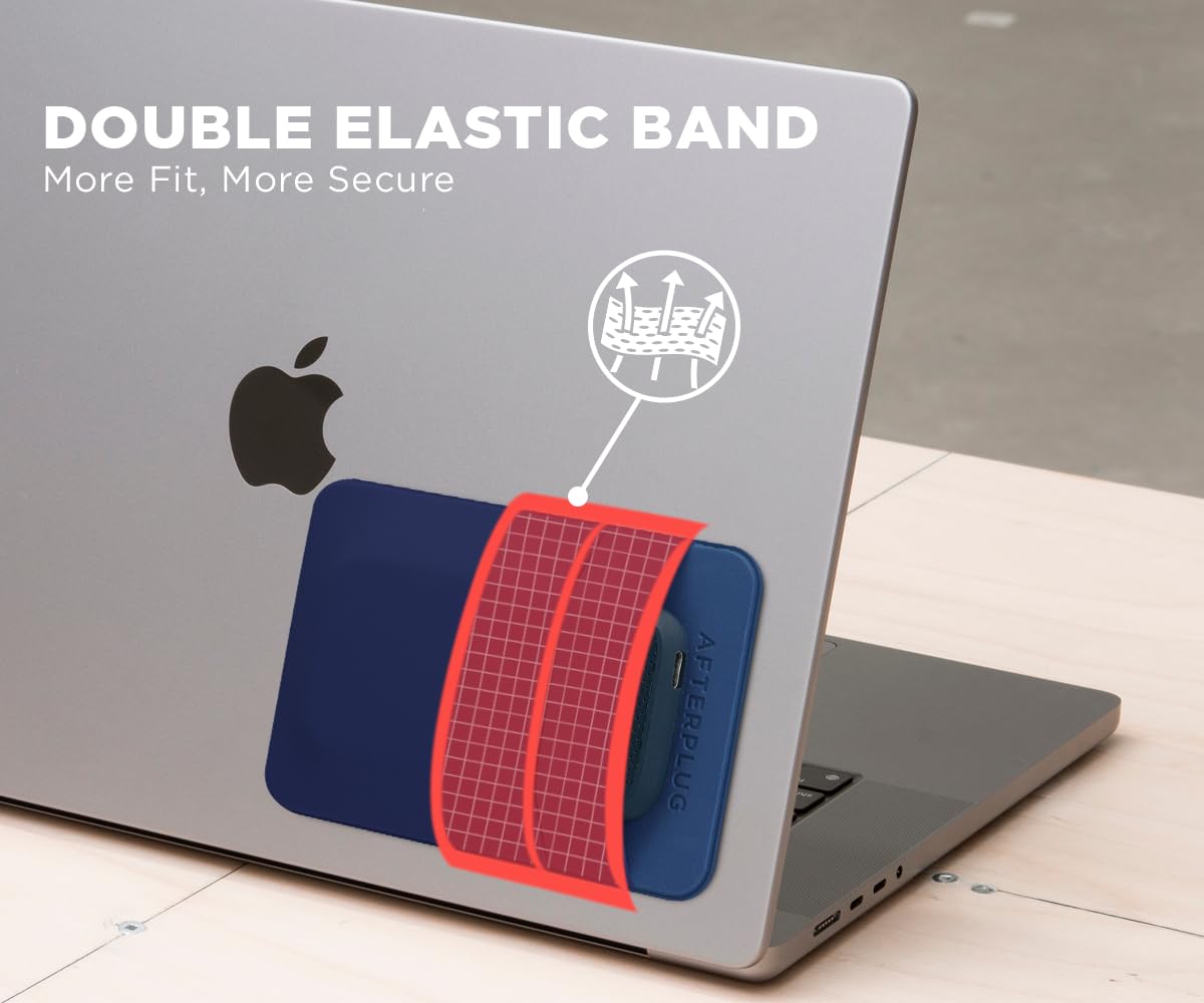 Q: How do I attach the Afterplug pouch to my laptop or tablet?A: To attach the Afterplug pouch, start by cleaning the surface of your laptop or tablet. Then, simply peel off the backing from the high-quality 3M adhesive tape and press it firmly onto the surface. Ensure that it adheres to a hard, clean, and smooth area for the best results.