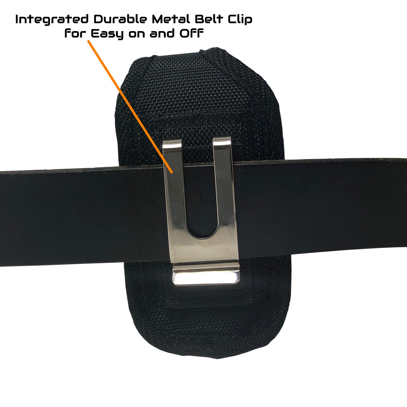 Q: How does the metal clip work for securing the phone?A: The strong metal clip allows you to securely attach the case to your belt, providing easy access to your flip phone while keeping it safe.