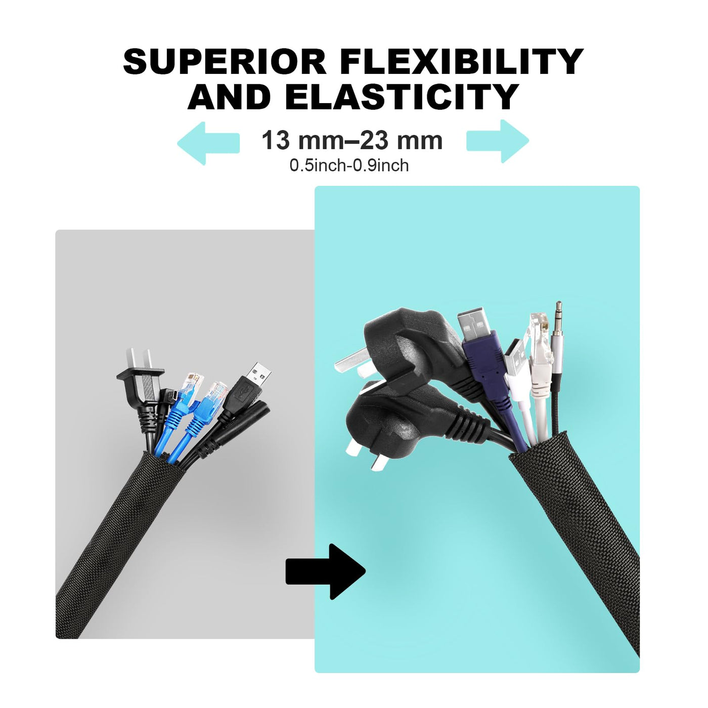Q: Can the AGPTEK Cable Sleeve be used for different sizes of cables?A: Yes, the AGPTEK Cable Sleeve is designed to accommodate various cable sizes, with a diameter range of 0.5 to 0.9 inches. It can be easily cut to the desired length, making it versatile for different applications.