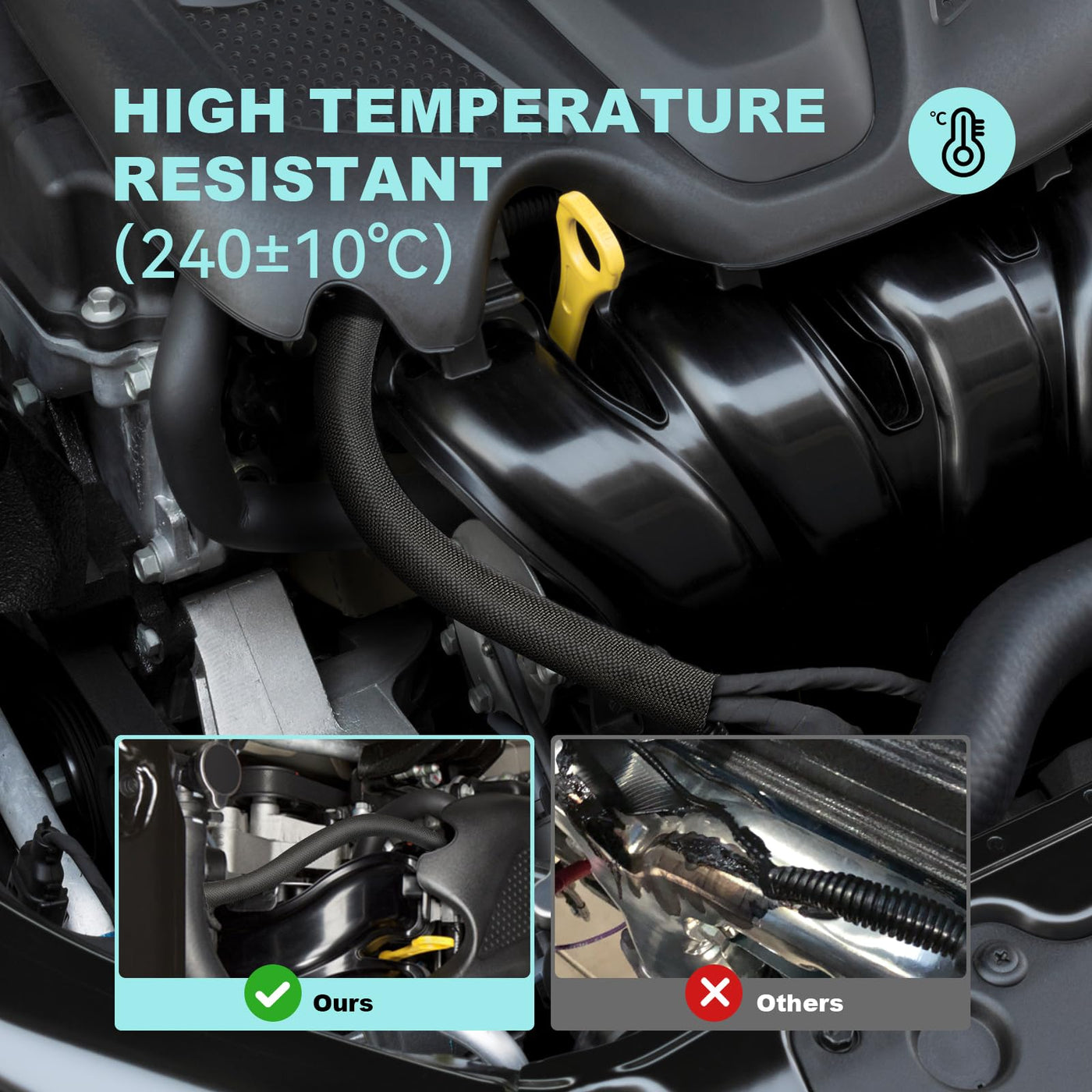 Q: Is the AGPTEK Cable Sleeve heat resistant?A: Yes, the AGPTEK Cable Sleeve is made from high-temperature resistant materials, with a temperature range of 240±10°C. It is flame-retardant and provides excellent insulation for electrical wires.