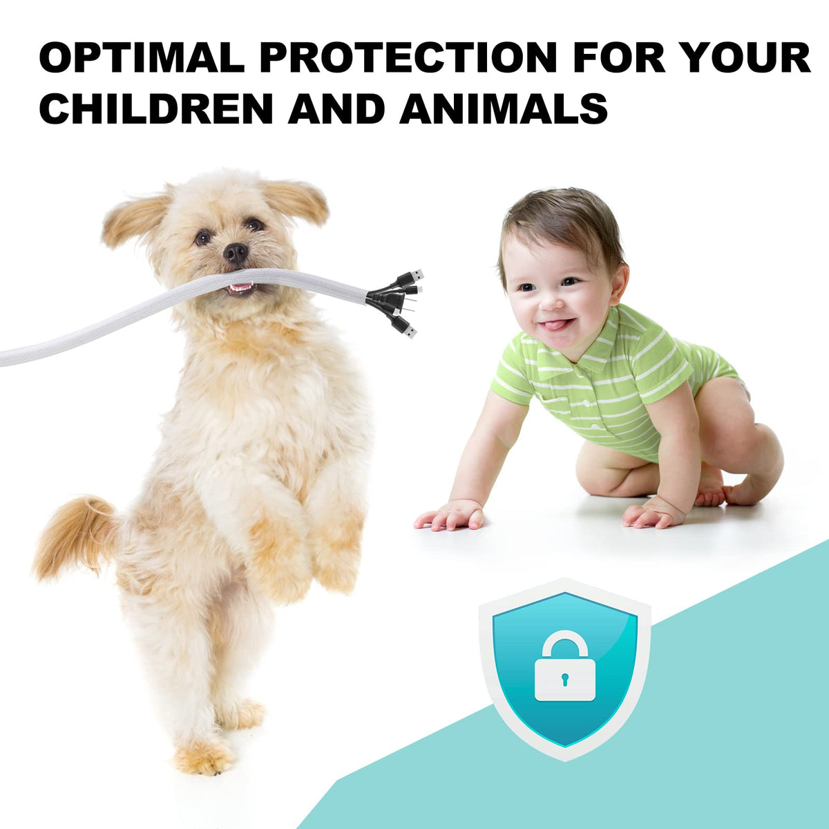 White Cable Sleeve Computer Desk Electric Cord Hider Wrapper Organizer Desk Cable Management Sleeve Under Desk Computer Workstation Cable Covers Wire Covers For Floor On Wall Cables Cords Desk Office Organization Protectors From Pets No Chew Cat Proof