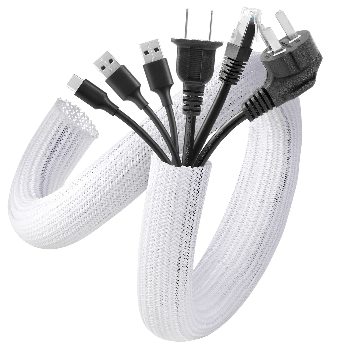 Agptek White Cable Sleeve Cover, 2 Pack 5Ft 1.2 Inch Cord Management Wire Organizer Under Desk, Home Office Computer Wire Cove