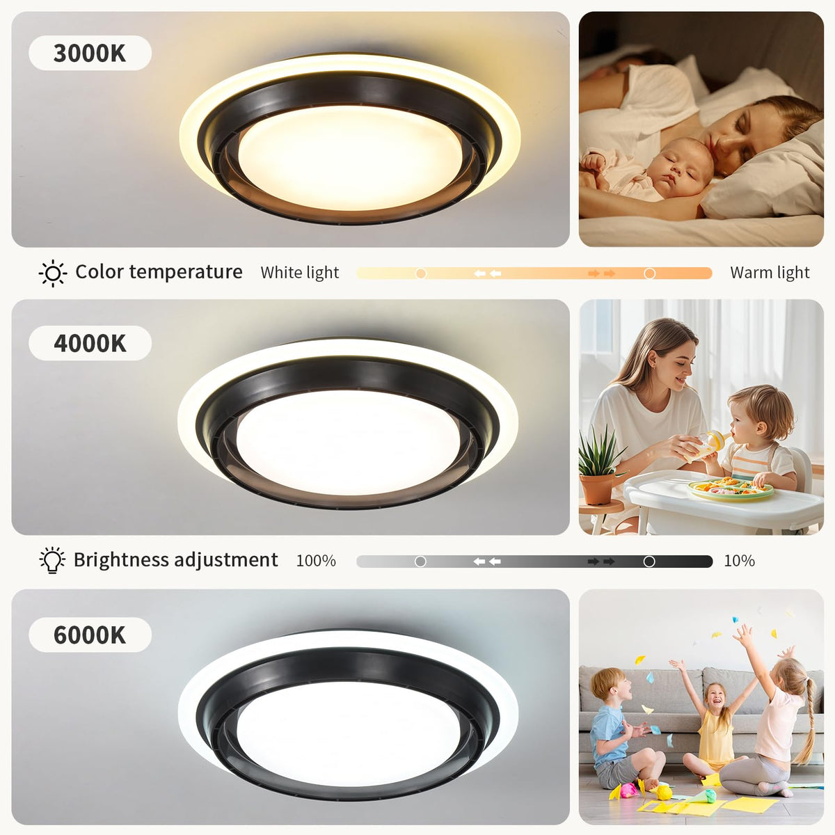 Low Profile Ceiling Fan With Light,19.29In Bladeless Ceiling Fan With Remote Control,Enclosed Flush Mount Fandelier,6 Wind Speed,Dimmable Led,Black,For Bedroom Dining Room