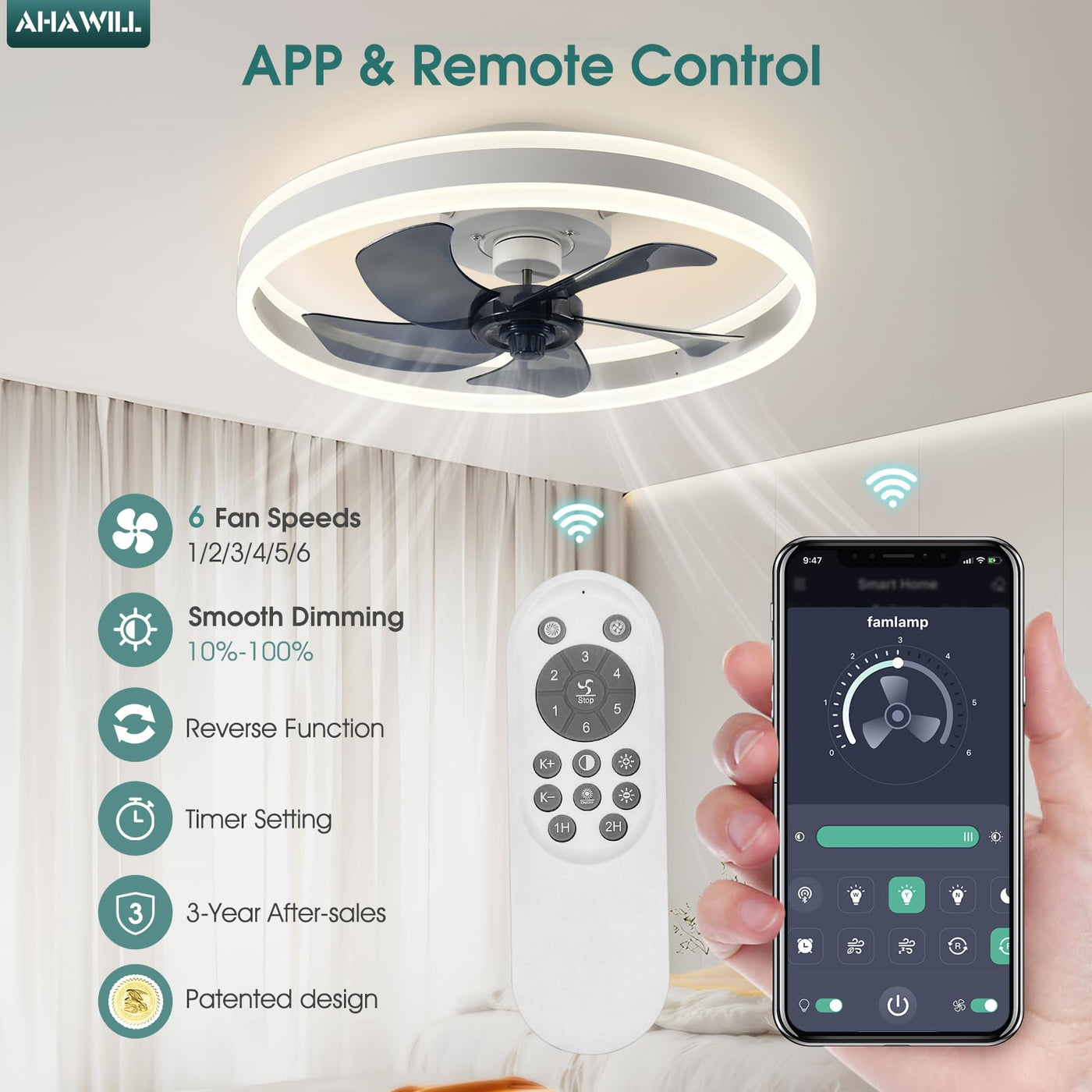 Q: What kind of maintenance does this ceiling fan require?A: The AHAWILL ceiling fan requires minimal maintenance. Regularly dusting the blades and checking the remote control batteries will ensure optimal performance. For any installation or quality concerns, AHAWILL offers support and replacement options.