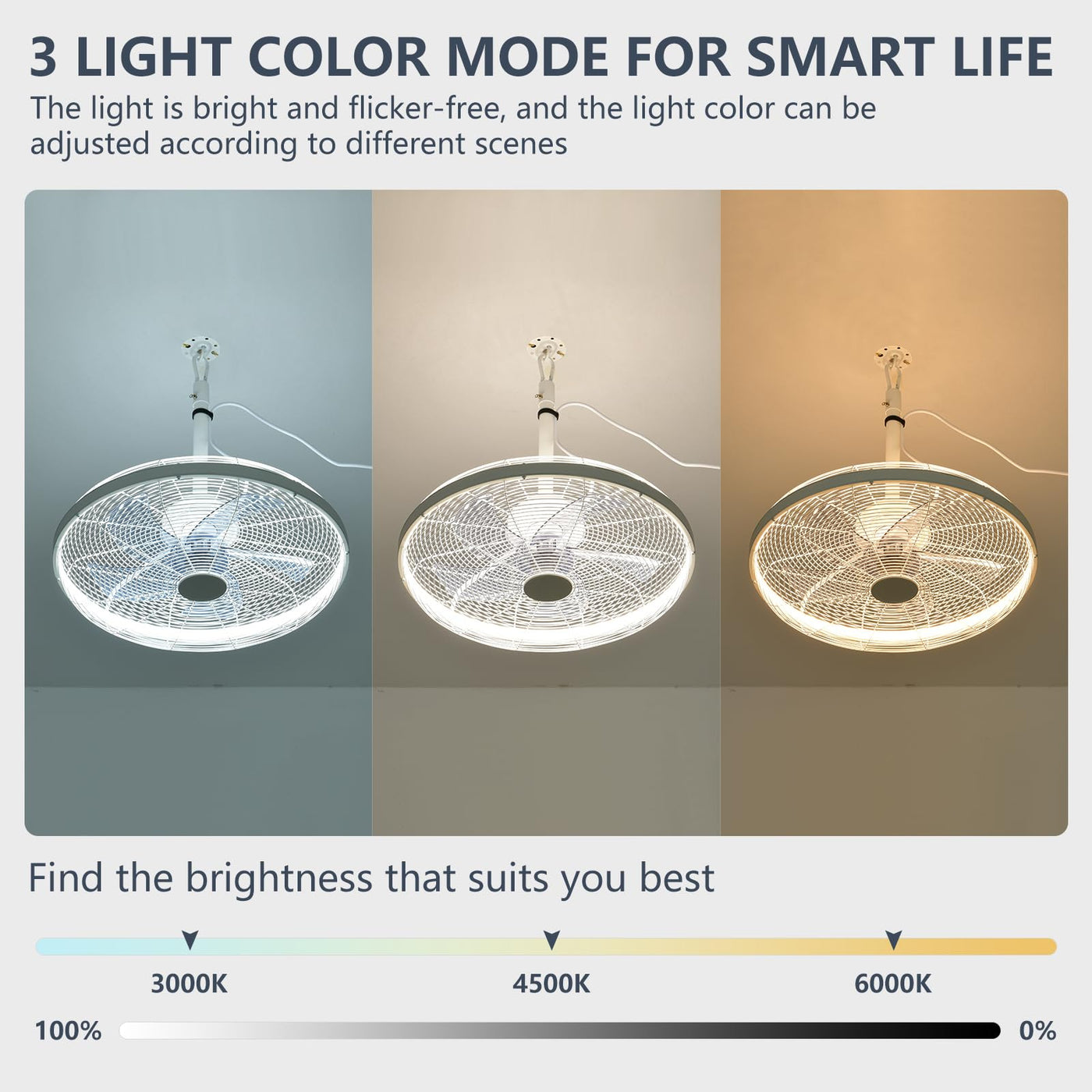 • Q: How do I control the fan's speed and light settings? A: The fan comes with a remote control that allows you to easily adjust the 6-speed wind settings and the brightness of the light. Additionally, you can switch between three color temperatures: Warm White (3000K), Neutral White (4500K), and Cool White (6000K) to suit your preference.