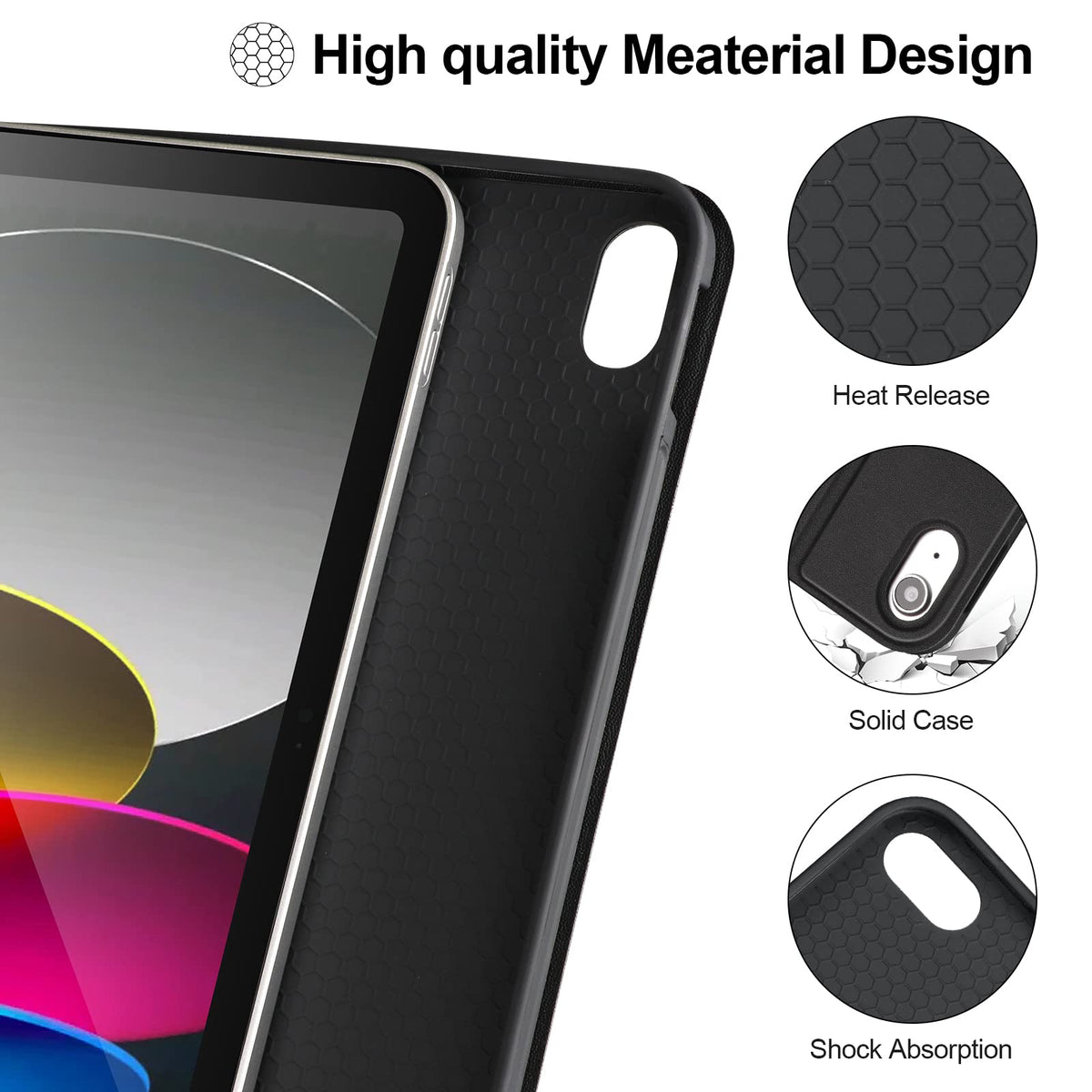 Q: What are the unique features of this iPad keyboard case?A: This iPad keyboard case features a detachable Bluetooth keyboard, multiple viewing angles, a built-in pencil holder, and a non-slip design for full protection against scratches and impacts. It also has a powerful battery that lasts up to 80 hours of use and a honeycomb grid pattern for heat dissipation.