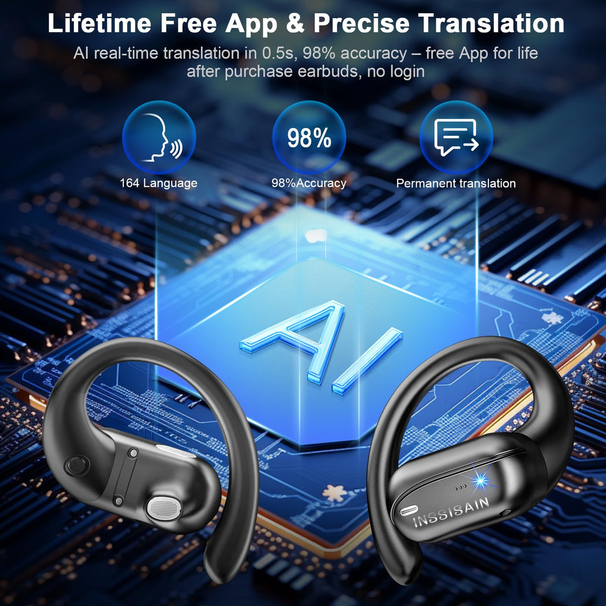 Break Language Barriers With Real-Time Ai Translation Earbuds!&Nbsp;Experience Seamless Global Communication With Our Ai Translation Earbuds, Designed To Translate 164 Languages And Accents (74 Languages + 90 Accents) In Just 0.5 Seconds. Whether You'Re Traveling Abroad, Attending International Meetings, Or Chatting With Friends, These Earbuds Deliver Crystal-Clear, Real-Time Two-Way Translation-All Through A Lifetime Free App With No Login Or Subscription Fees.&Nbsp;Why Choose Our Translation Earbuds?7 Smart Modes For Every Scenarioswitch Effortlessly Between Free Talk, Video Call, Photo Translation, Ai Chat, And More! Perfect For Business Negotiations, Travel Adventures, Or Daily Multilingual Interactions. Simply Download The App, Pair Via Bluetooth 5.4, And Start Conversations In Any Language. Ipx7 Waterproof &Amp; One-Click Stabilitybuilt For Active Lifestyles: Survive Intense Workouts, Rainy Days, Or Accidental Spills With Ipx7 Waterproof Certification. Encountered Magnetic Interference? The One-Click Reset Button Instantly Re-Pairs Earbuds, Ensuring A Stable, Low-Latency Connection For Uninterrupted Calls And Music.10-Min Fast Charge &Amp; 36H Marathon Playtimecharge 10 Minutes For 4 Hours Of Use (75% Battery) Or Enjoy 6 Hours On A Full Charge. The 600Mah Charging Case (Refills Earbuds 5 Times) Delivers 36 Hours Total Battery Life, Ideal For Long Flights Or Busy Days. Track Battery Life Easily With Dual Led Displays (Case + Earbuds).Open-Ear Comfort &Amp; Studio-Quality Soundweighing Just 8G Per Earbud, The Ergonomic Open-Ear Design With Soft Silicone Hooks Ensures All-Day Comfort. 14.2Mm High-Resolution Speakers Pump Out Immersive Bass, While 4 Noise-Canceling Mics Block Background Noise For Crisp Calls.Tech Specs You Can Trustbattery: 70Mah (Per Earbud) + 600Mah Case (36H Total)Bluetooth 5.4: Stable Connection Up To 33Ft, Auto-Pairingcompatibility: Ios &Amp; Android Devicesincluded: Charging Case, Usb-C Cable, Silicone Earbuds, User Manual&Nbsp;Perfect For:Travelers Exploring Foreign Countriesbusiness Professionals In Global Meetingsstudents Learning New Languagesoutdoor Enthusiasts Needing Durable Gear