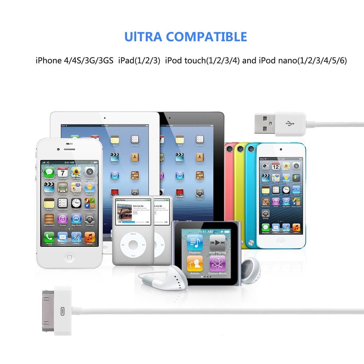 Aibocn 30 Pin Connector To Cable - Apple Mfi Certified Original Apple 30 Pin Connector And Authentication Chip Directly From Apple Inc,Genuine Cable Will Ensure You The Highest Quality. *Sync And Charging Convenient Quick Charging And Synchronizing Data. Light-Weight And Easily Coiled, You Can Use It At Home, In The Office, In The Car Or Traveling, Its The Best Replacement Charger Cable For You. * Eco-Friendly Guaranteed Using Environmental Material And Has Passed The Non-Toxic Testing And Certification To Guarantee Its Health And Safety, And You Have No Longer Worry About Your Baby Bite The Cables. Specification: 1. Color: White 2. Interface: Usb 2.0 A Type To Dock 3. Connectors: Usb A(Male) To Dock(Male) 4. Length: 4 Feet(1.2M) 5. Weight: 29G Compatible *Iphone : Iphone 4, Iphone 4S, Iphone 3G, Iphone 3Gs ; *Ipad : Ipad(1St Generation), Ipad 2(2Nd Generation), Ipad 3(3Rd Generation); *Ipod : Ipod 5Th Generation (Video); Ipod Classic 80Gb/160Gb (2007), Ipod Classic 120Gb (2008), Ipod Classic 160Gb (2009); Ipod Nano 1St, 2Nd, 3Rd, 4Th, 5Th, 6Th Generation; Ipod Touch 1St, 2Nd, 3Rd, 4Th Generation.