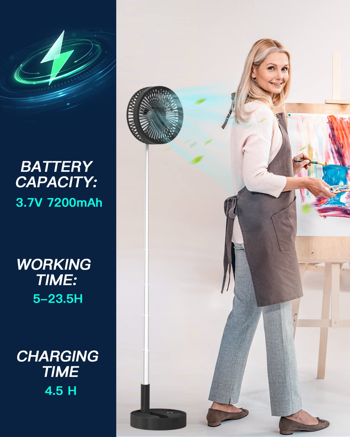 Aicase Stand Fan,Folding Portable Telescopic Floor/Usb Desk Fan With 7200Mah Rechargeable Battery,4 Speeds Super Quiet Adjustable Height And Head Great For Office Home Outdoor Camping-Black