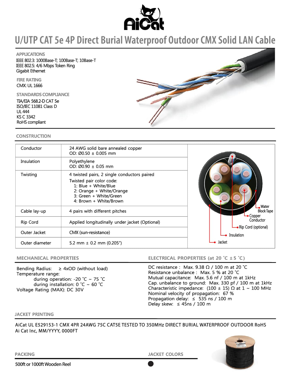 Q: Can this cable be used for direct burial installations?A: Yes, the AiCat Cat6 Outdoor Ethernet Cable is designed for direct burial installations, providing reliable performance underground while safeguarding against moisture and other environmental factors.