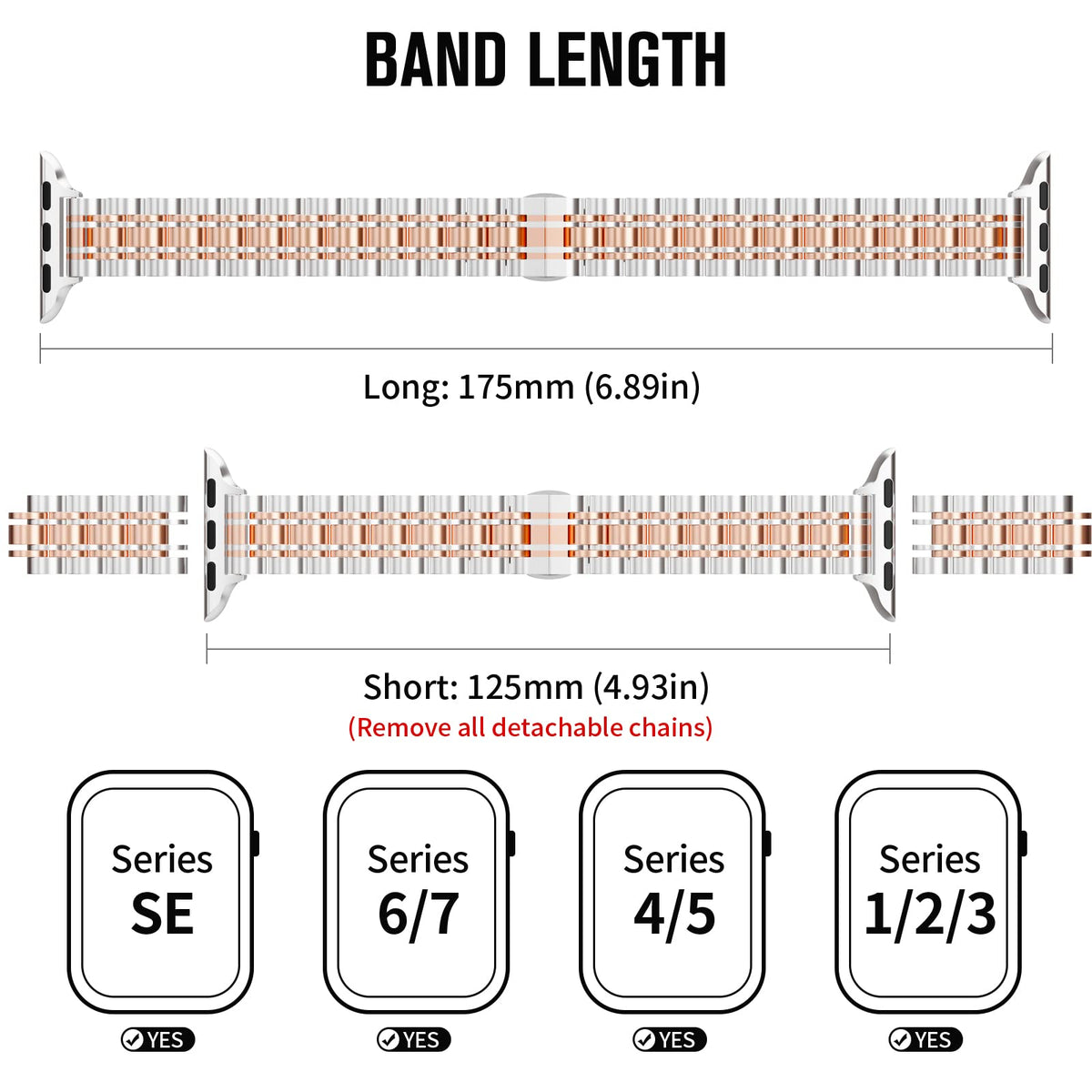 Ightness & Slim Design:The Weight Is Only 116 Oz, So It Is Your Best Choice If You Love The Light Iwatch Band Extremely Slim, Dressy And Elegant Design For Women Makes The Wrist Look Slimmer Urable Material: Its Cut And Crafted From Premium 304 Stainless Steel Well Polished, No Fading, No Sharp Edges, Water-Proof, Robust To Use Every Detail Is Meticulous Compatible Models: Thin Stainless Steel Bands Compatible With All Apple Watch Models Including 38Mm40Mm41Mm Apple Watch Series 9 Series 8, Series 7,Series Ultra, Series 6, Series 5, Series 4, Series 3, Series 2, Series 1, Seotice]:Please Match The Correct 384041Mm Or 42444549Mm Based On The Model Number Shown On The Back Of The Iwatch Easy To Adjust: The Band Comes With Upgraded Link-Remove Tool, The Slim Metal Watch Band For Apple Watch Band Can Be Shortened Or Extended Easily To Fit Your Wrist Perfectly Fit Wrist Size Is 55-83 Inches Ackage:1* Watch Band + 1* Remove Tool + 1 Instruction + 24 Hours Worry-Free After-Sales