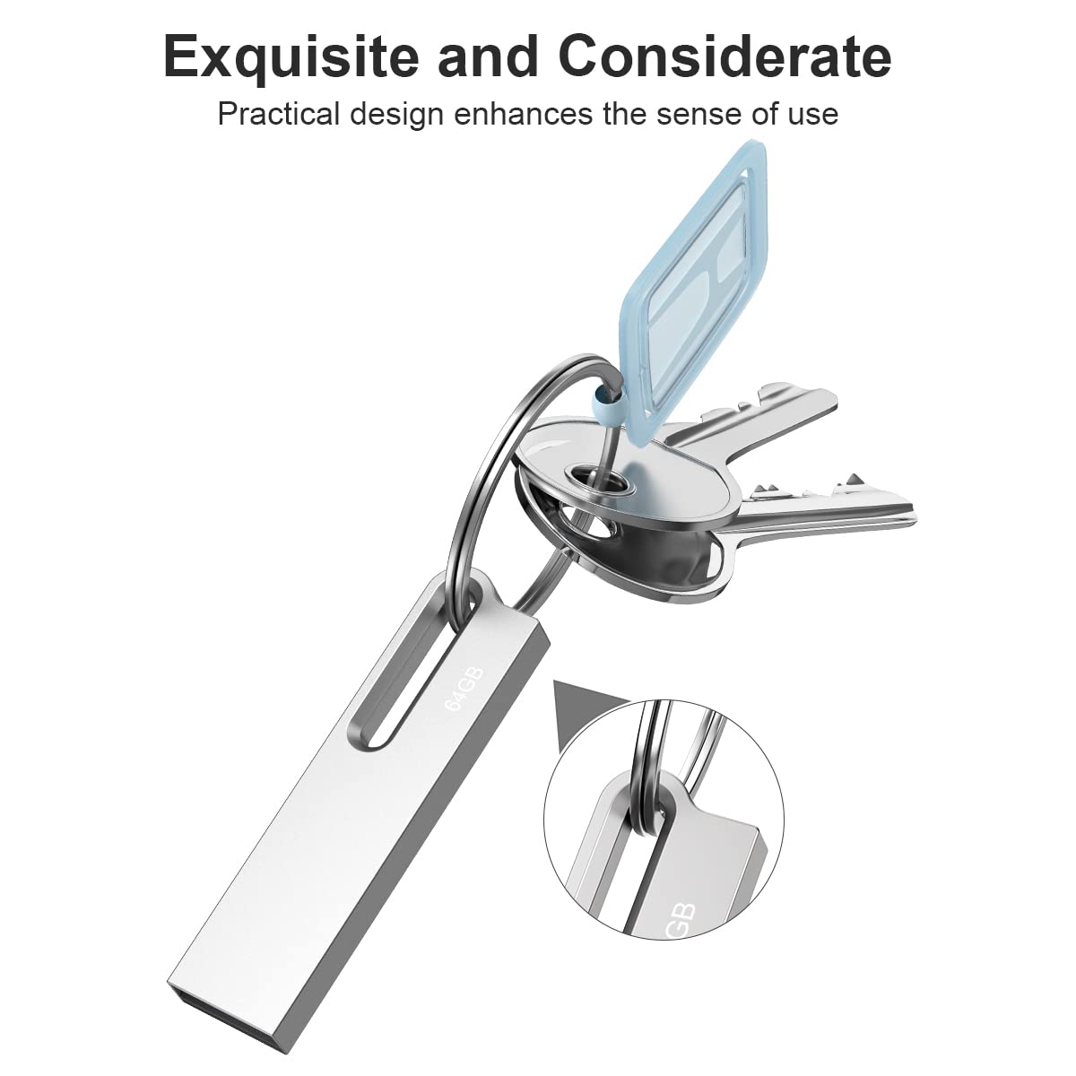Aiibe 64Gb Flash Drive 5 Pack Metal Usb Drive Thumb Drive 64Gb Usb 2.0 Memory Stick Waterproof Usb Flash Drives Jump Drive Usb Stick With Keychain (64Gb, Silver)