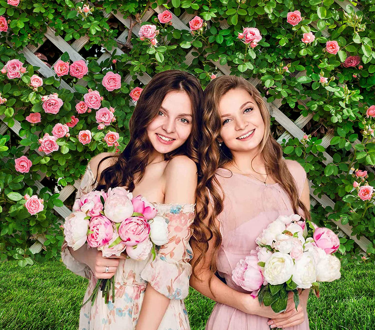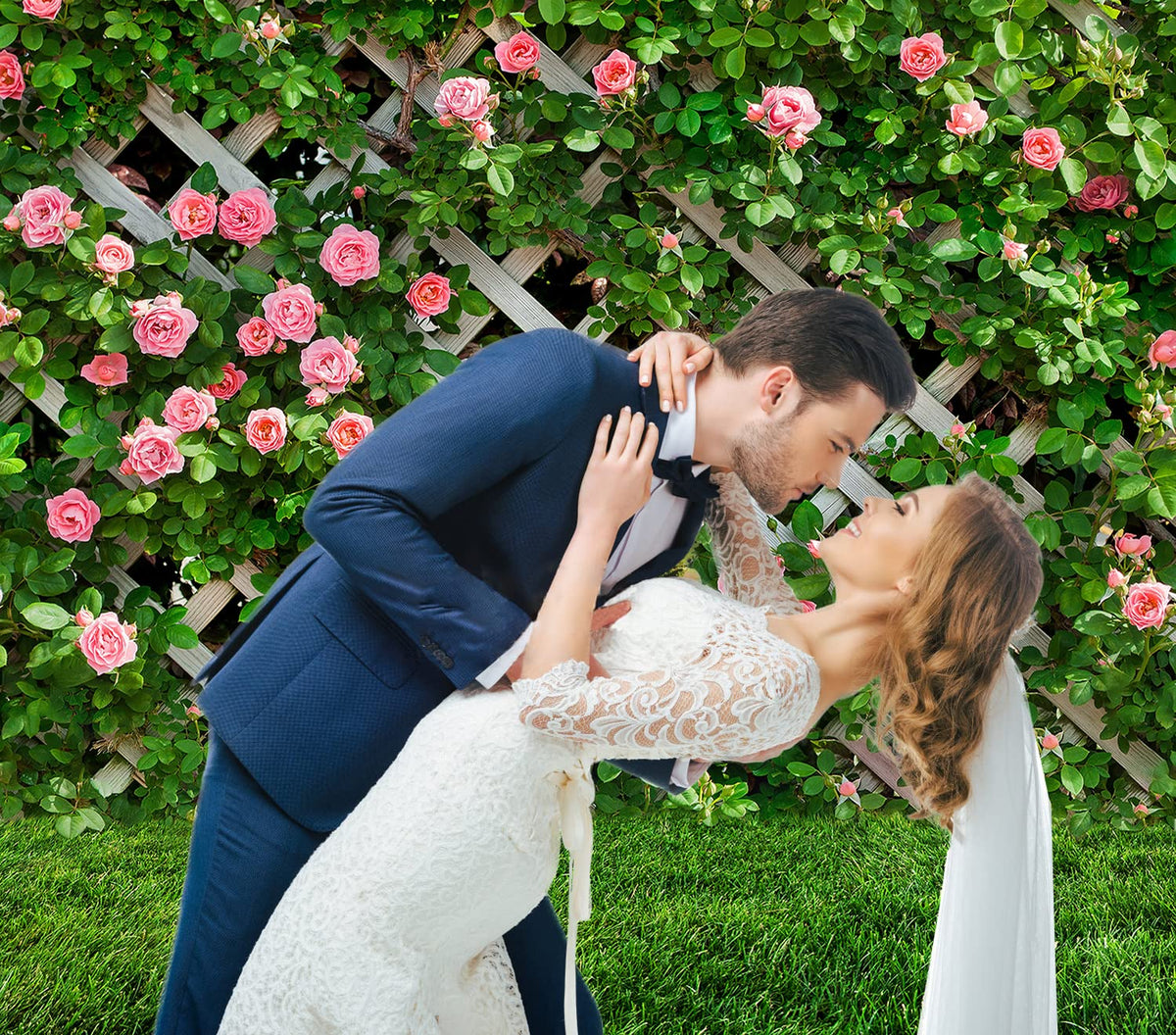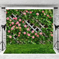 Aiikes 8X8Ft Flowers Photography Backdrop Spring Floral Photo Background Green Leaf Fence Backdrops Wedding Bridal Backdrop Baby